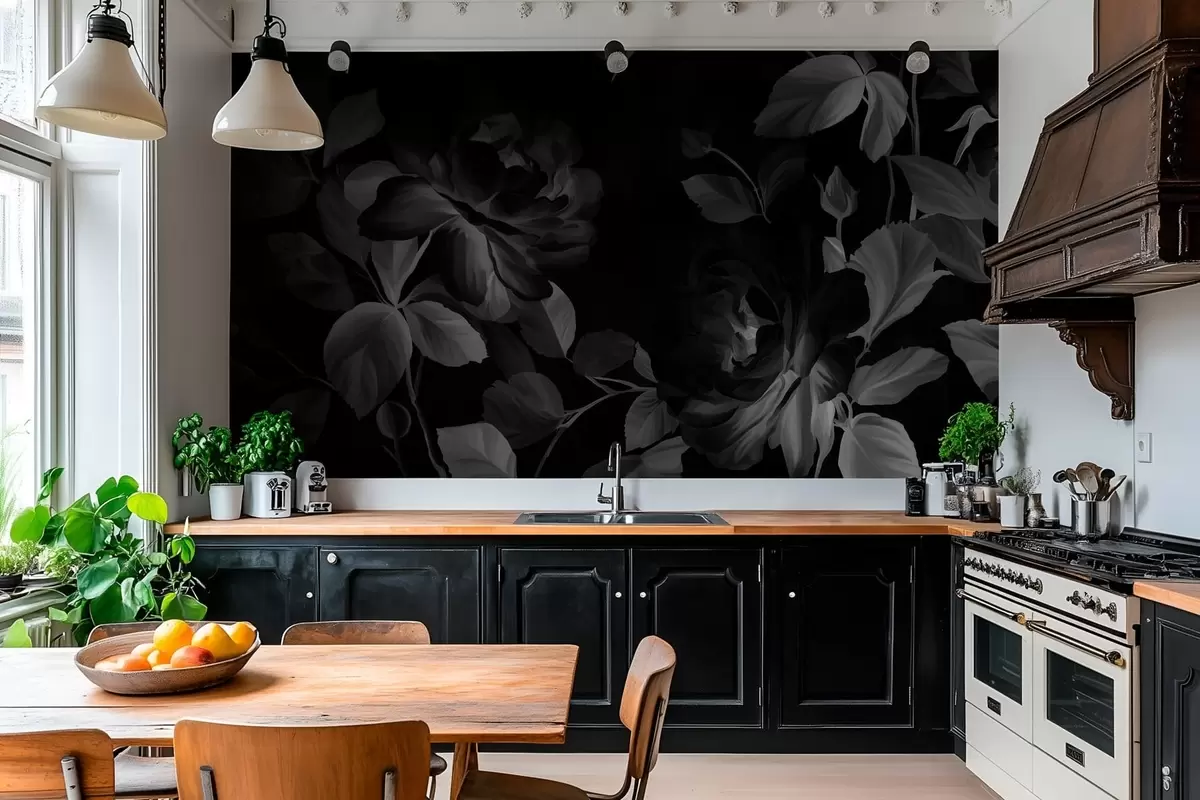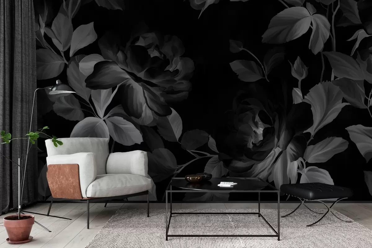 Fototapetak fekete-fehér festői rózsák olajfestmény stílusban Nr. w04873v1