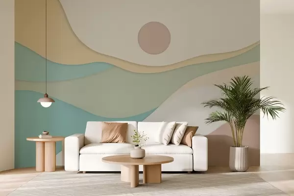 Fototapetak Minimalista absztrakció, lágy, hullámzó formákkal, amelyek a folyó tájakra és a dűnékkel tarkított tájra emlékeztetnek Nr. w04874