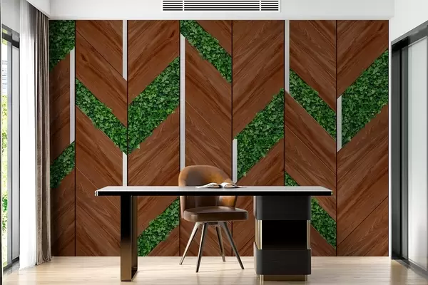 Fototapetak sötét fa panelek utánzata növényi betétekkel Nr. w04875v1