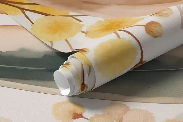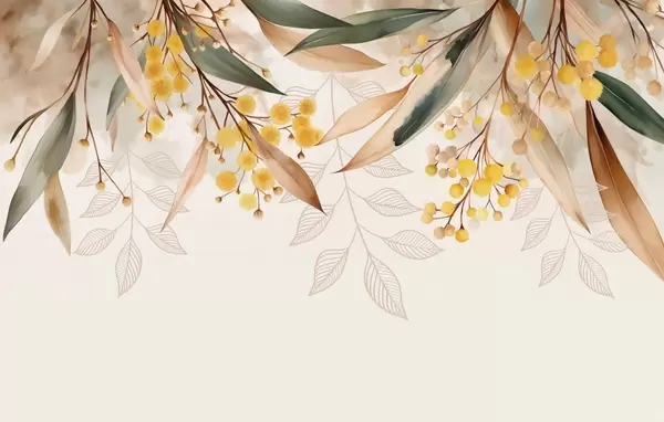 Fototapetak akvarell stílusban felülről hulló mimóza virágok és levelek Nr. w04880