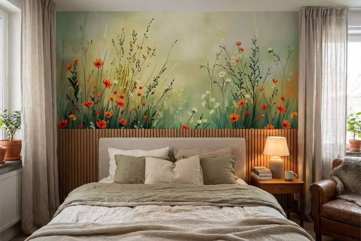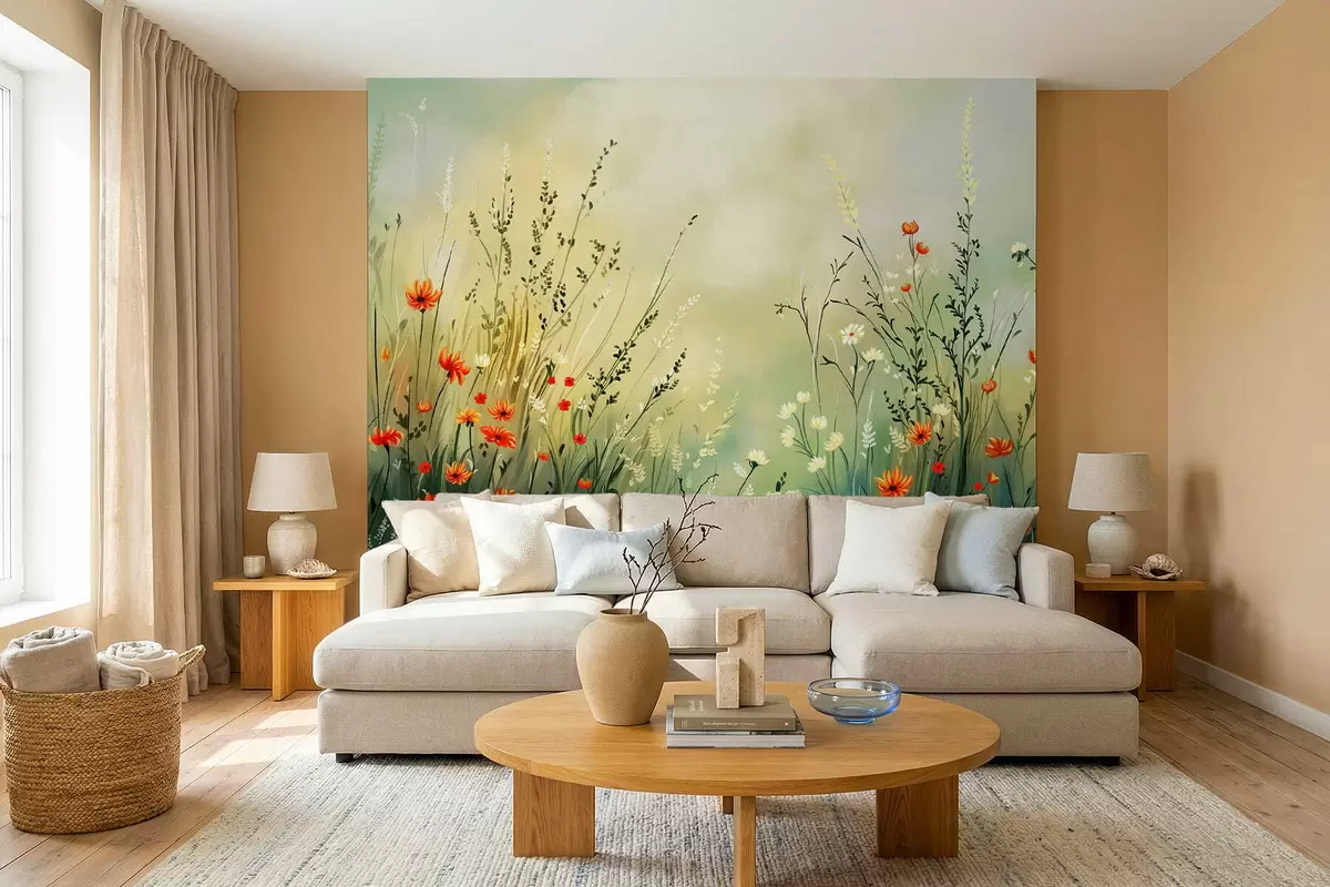Fototapetak Lágy, festői stílusú réti virágok és fűszernövények Nr. w05015