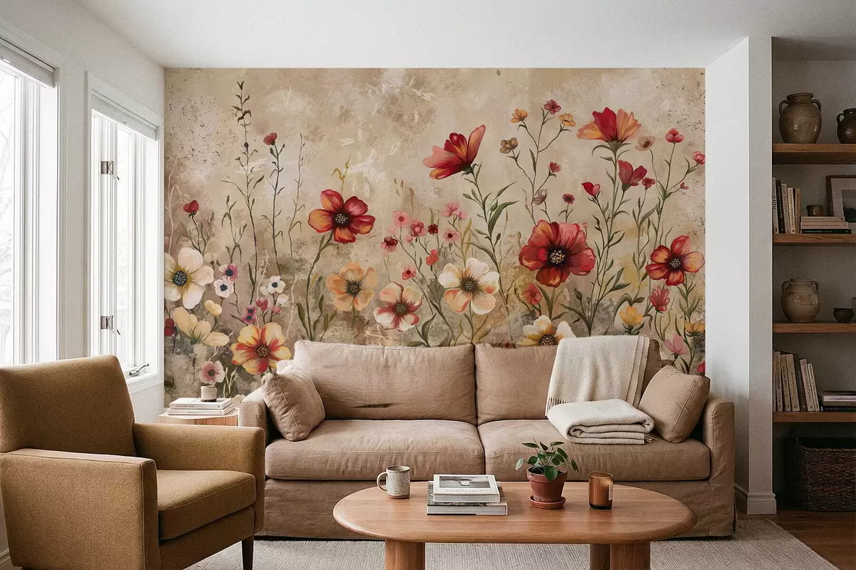 Fototapetak Virágkompozíció texturált háttérrel meleg tónusokban Nr. w05016