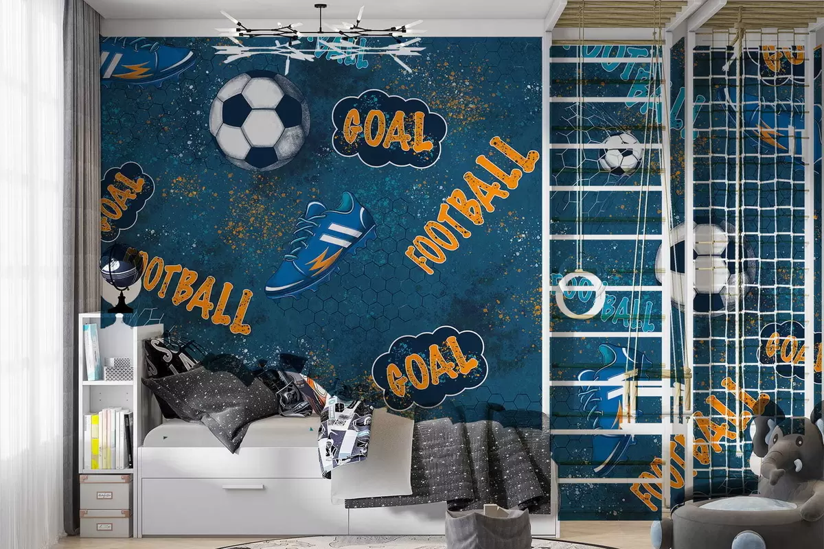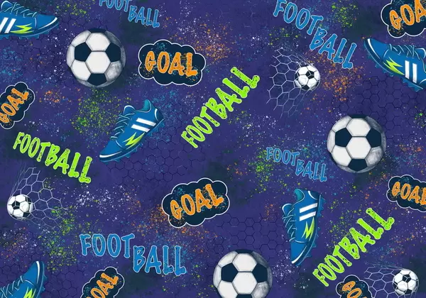 Fototapetak Gyerekek mintája labdákkal, cipőkkel és sportos szavakkal Nr. w05037