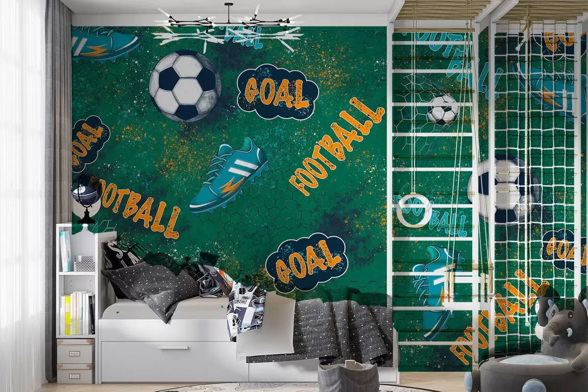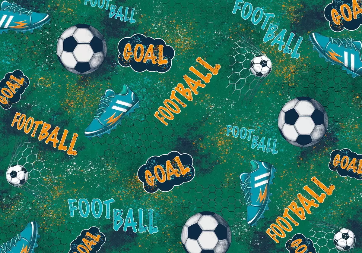 Fototapetak Gyerekek számára készült, zöld színű futballmintás Nr. w05037v1