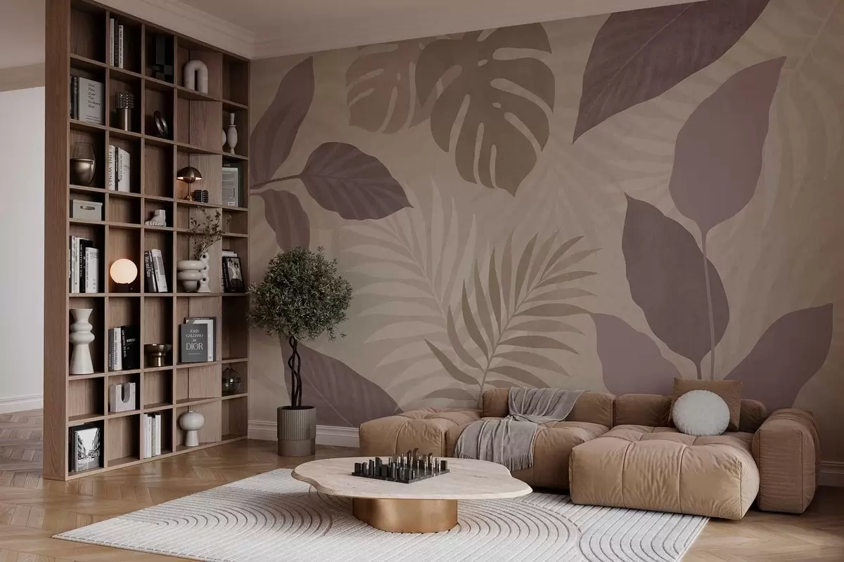 Fototapetak texturált trópusi levelek homokos háttér előtt Nr. w05063