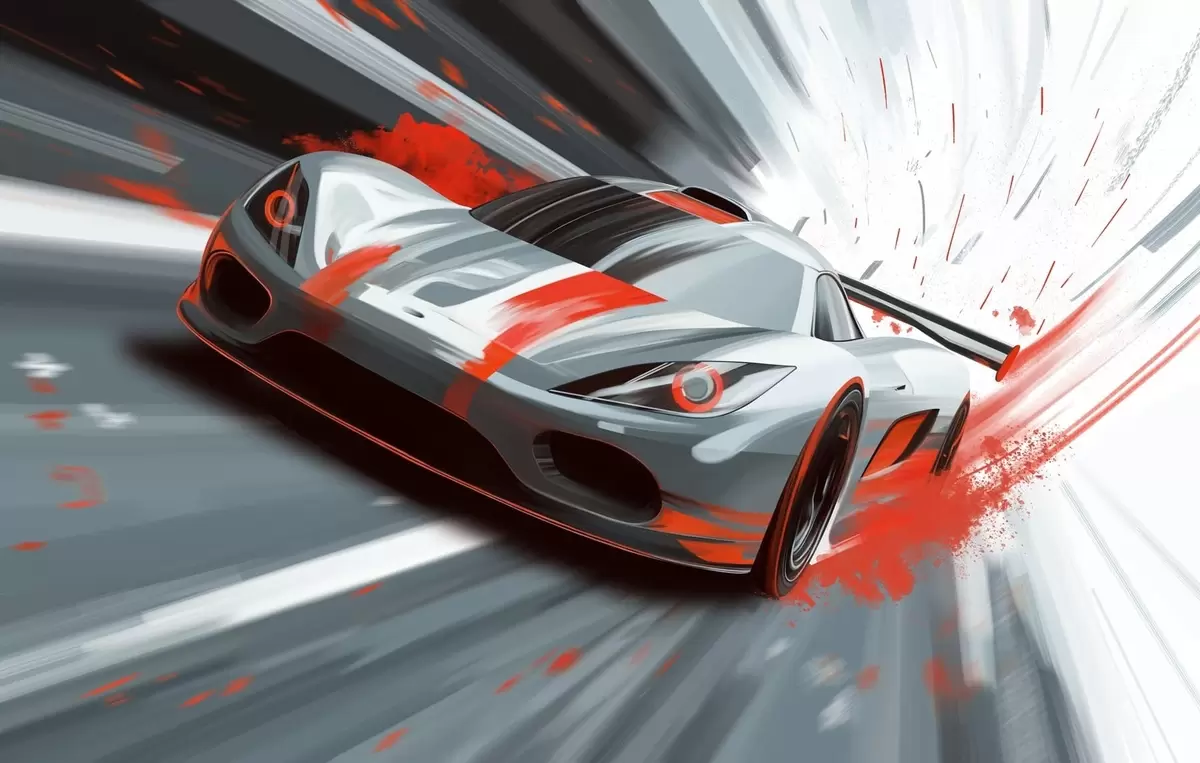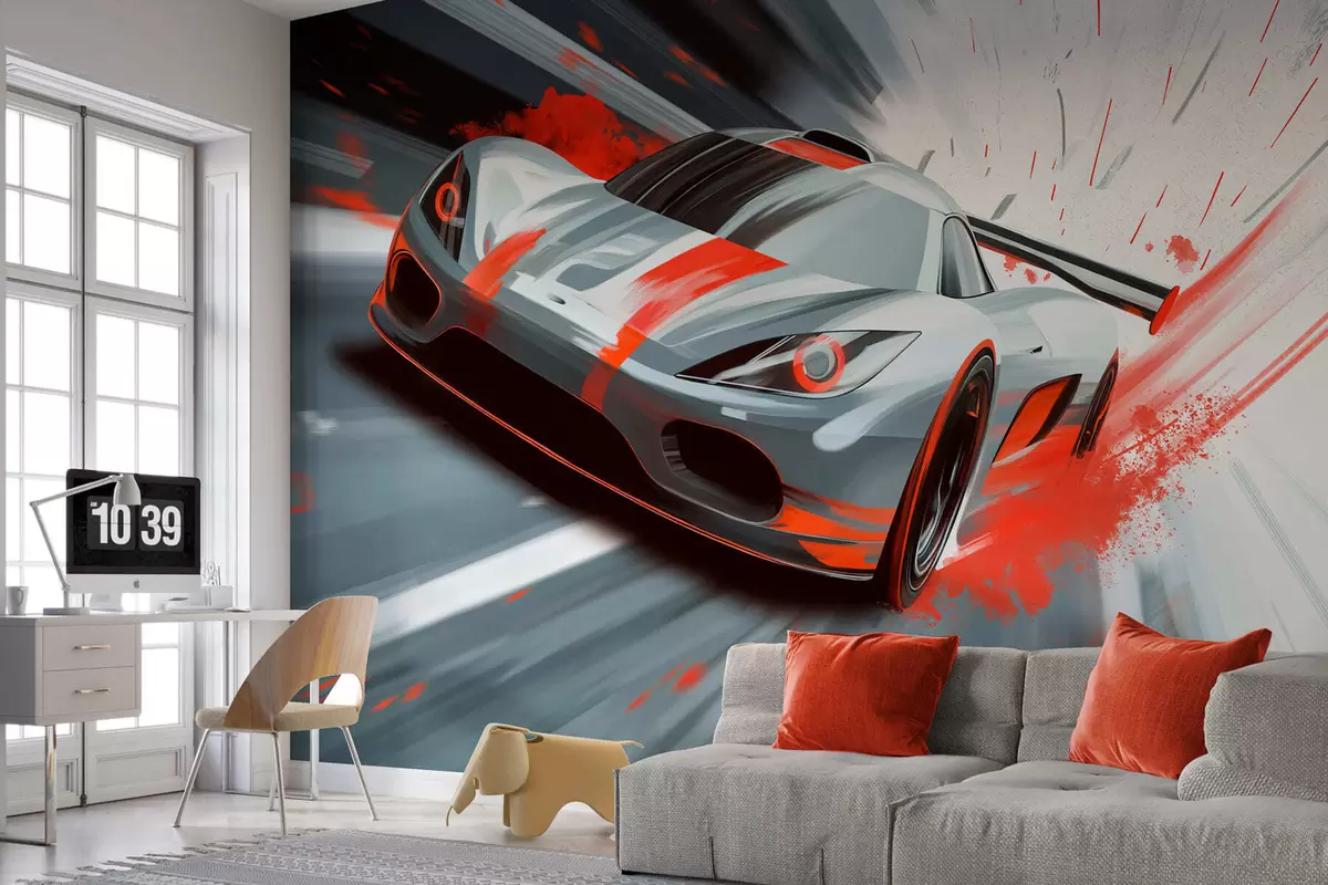 Fototapetak dinamikus sportautó digitális rajzstílusban, piros díszítéssel Nr. w05069v1