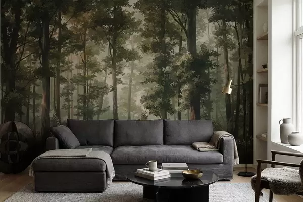 Fototapetak Erdei illusztráció köddel, magas fákkal és ösvénnyel Nr. w05089