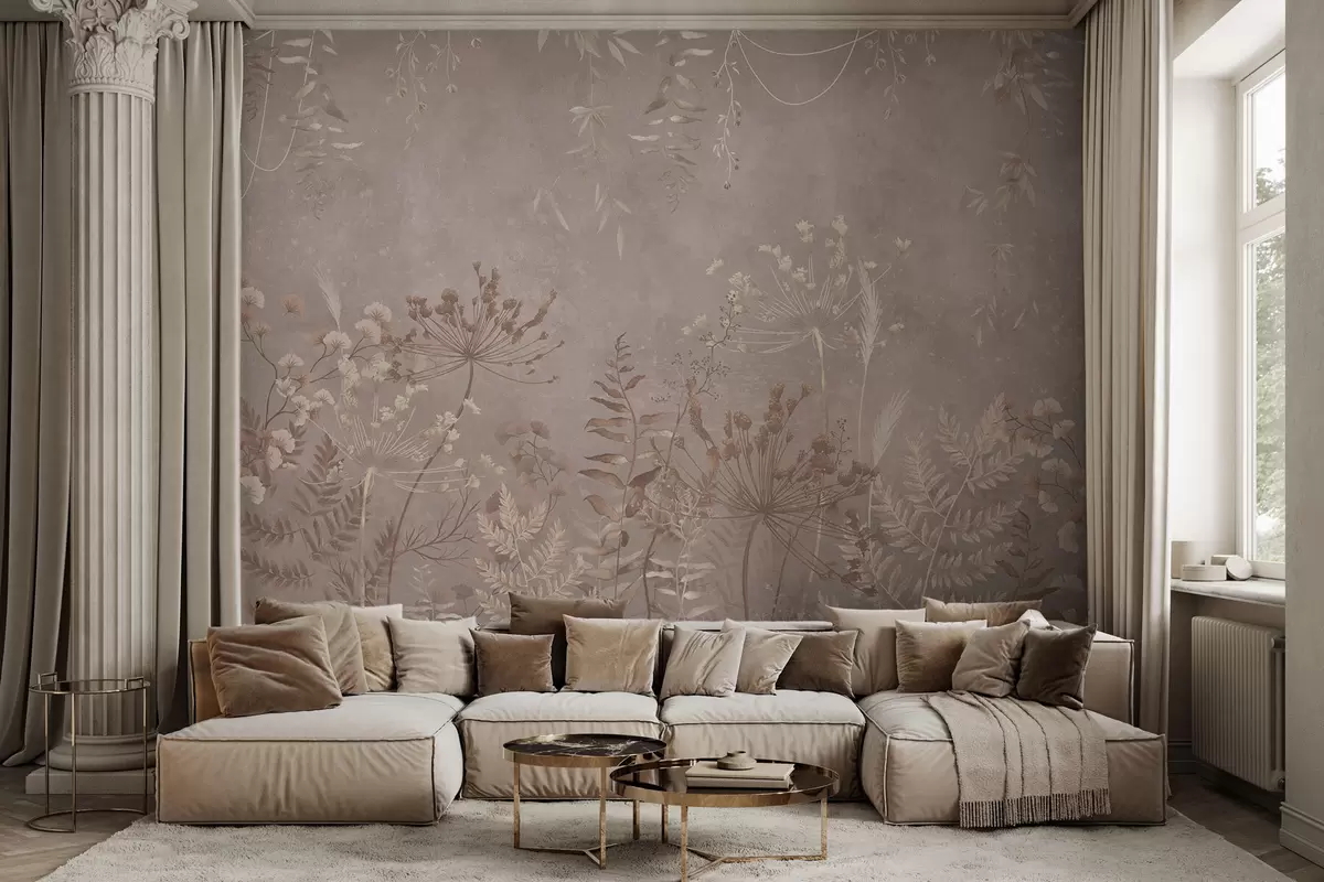Fototapetak Puha bézs színű botanikai mintázat vadvirágokkal Nr. w05092v2