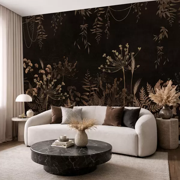 Fototapetak Sötét botanikai mintázat virágokkal és fűszálakkal Nr. w05092v3