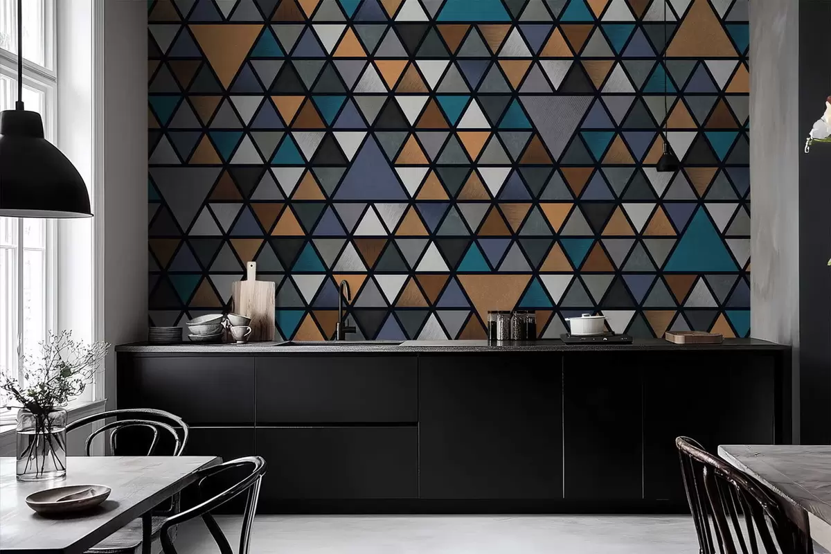 Fototapetak Többszínű háromszögek geometriai mintája Nr. w05094