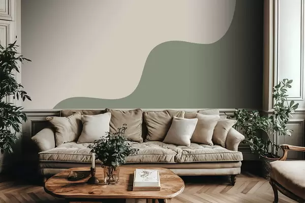 Fototapetak Sima, absztrakt formák világos bézs és zöld árnyalatokban Nr. w05097