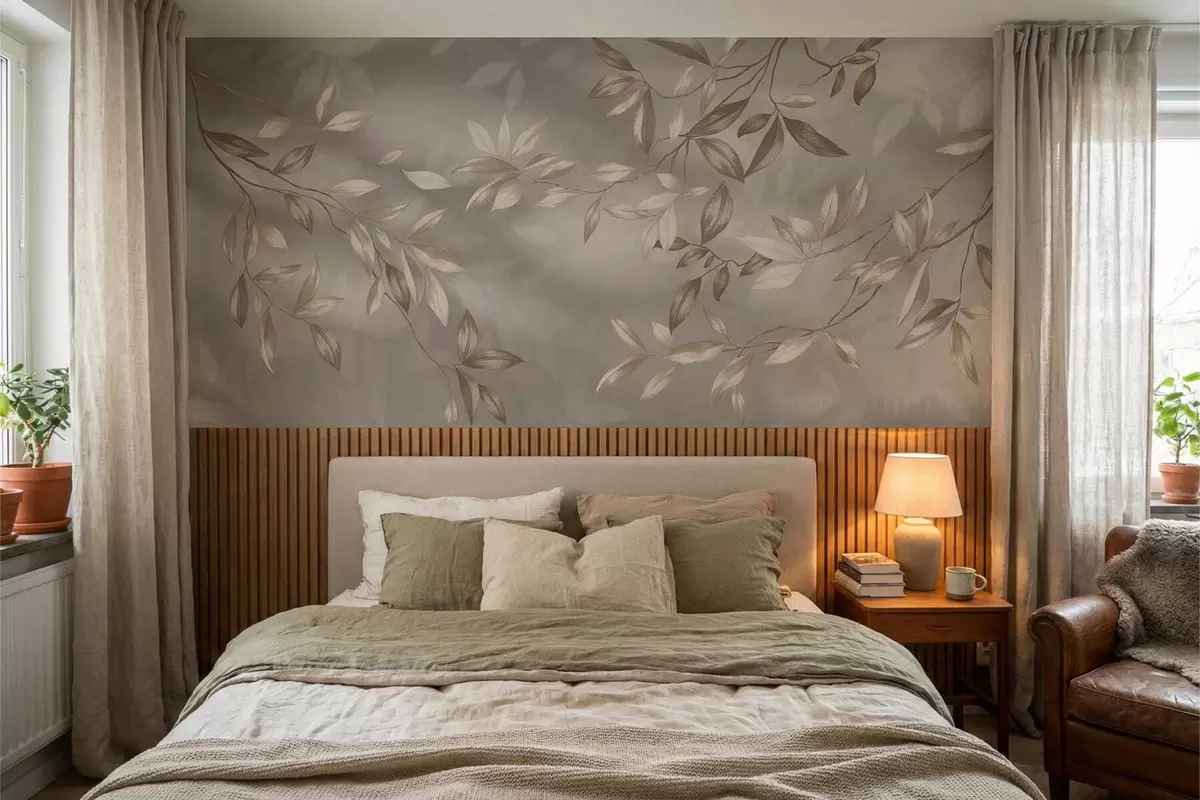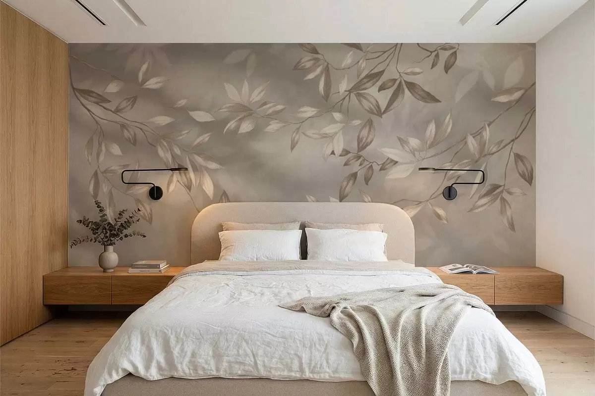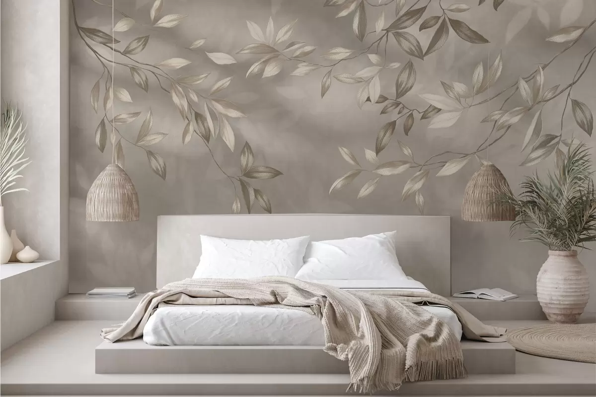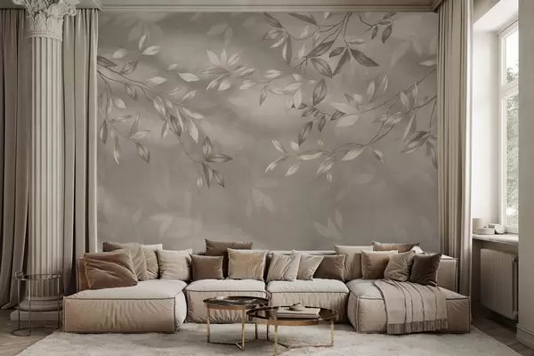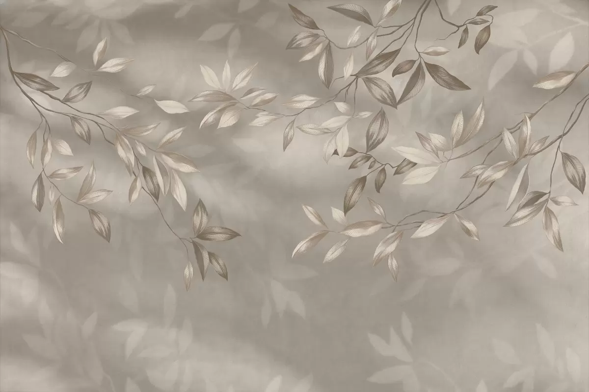Fototapetak Elegáns, bézs árnyalatú, leveles ágak világos háttér előtt Nr. w05113