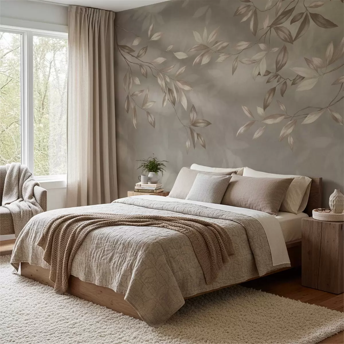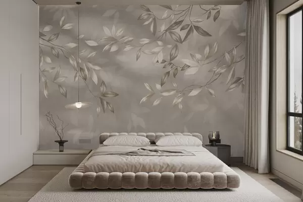 Fototapetak Elegáns, bézs árnyalatú, leveles ágak világos háttér előtt Nr. w05113
