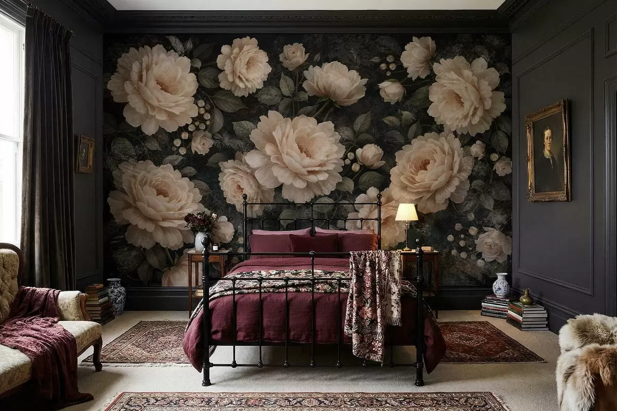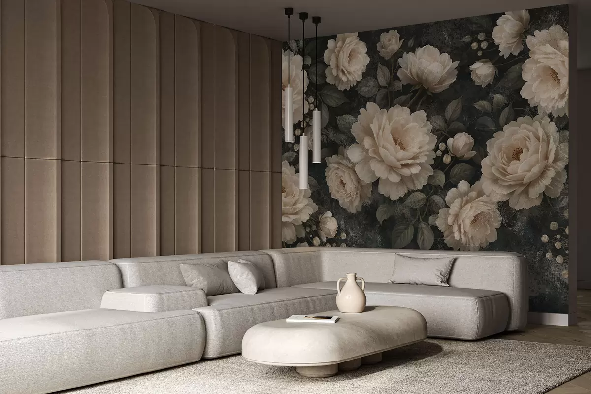 Fototapetak Tömeges virágok bézs színpalettán sötét háttér előtt Nr. w05114