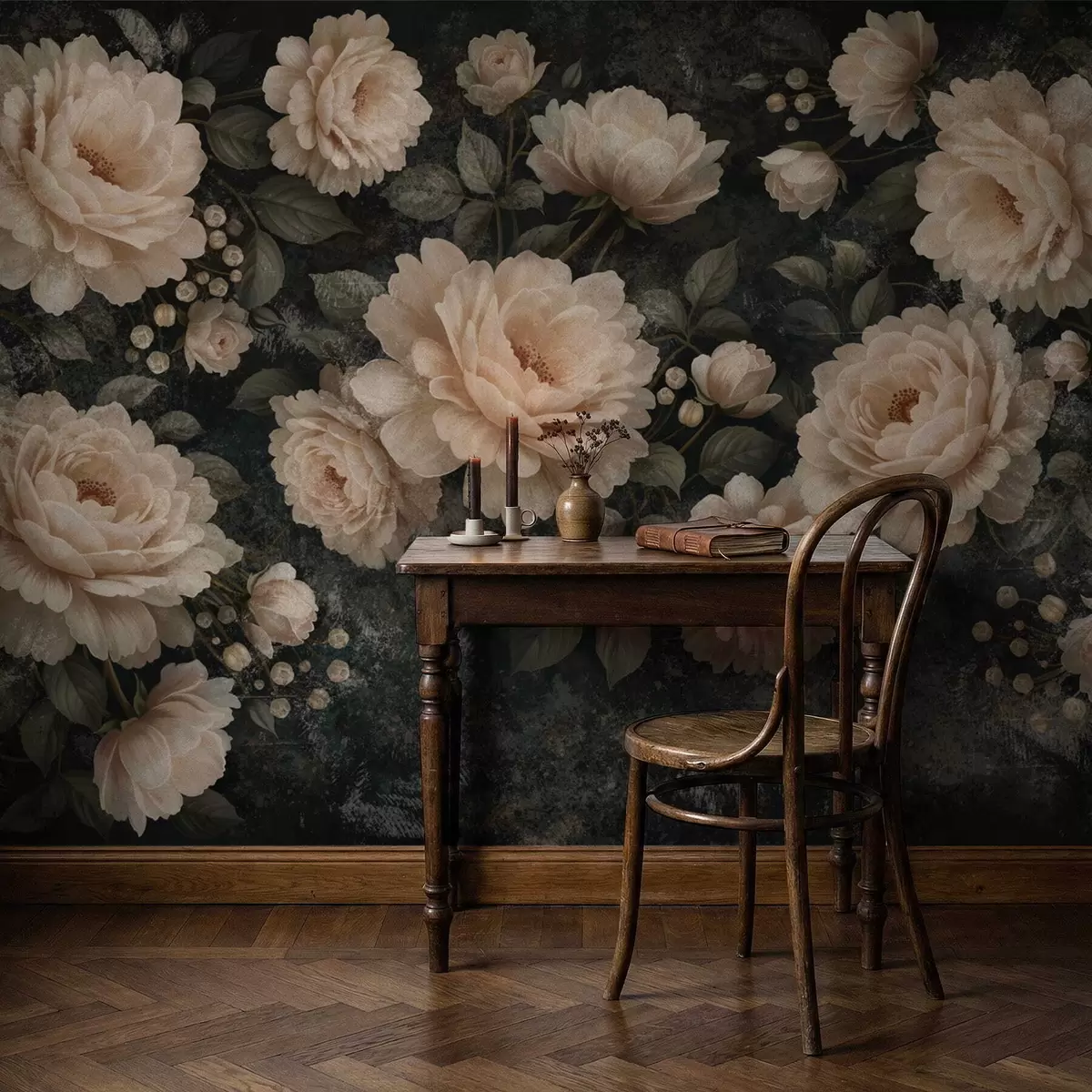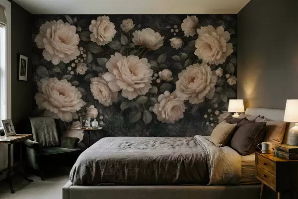 Fototapetak Tömeges virágok bézs színpalettán sötét háttér előtt Nr. w05114