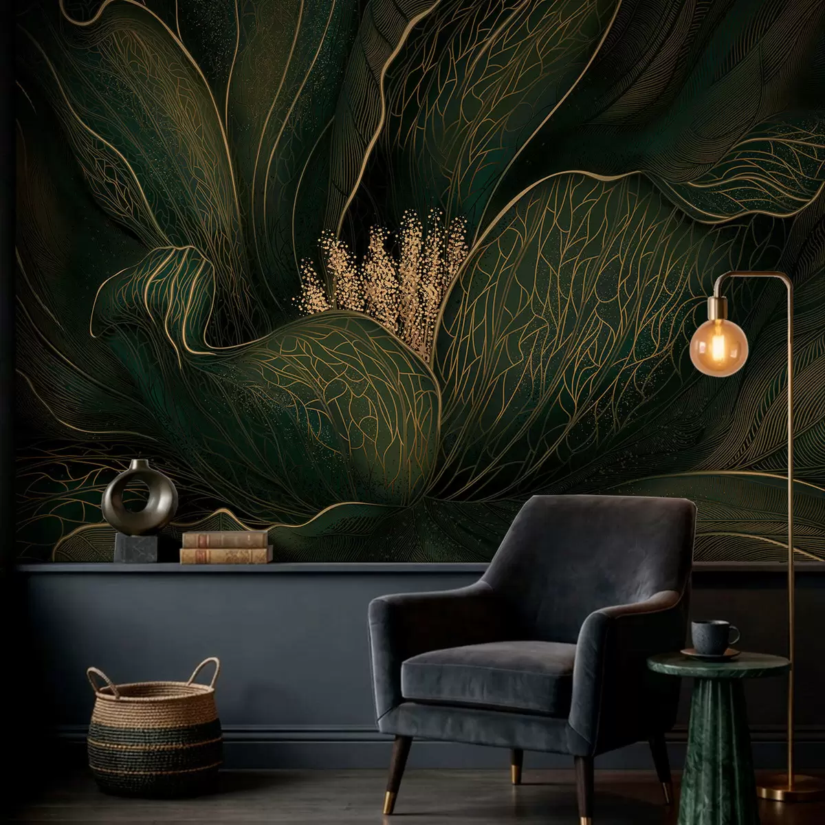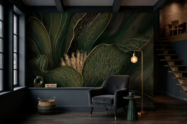 Fototapetak Sötétzöld, absztrakt virág finom vonalrészletekkel Nr. w05119v1