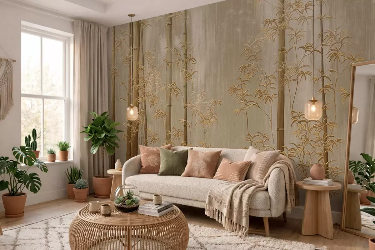 Fototapetak Bézs színű, vékony szárú bambusz Nr. w05120v2