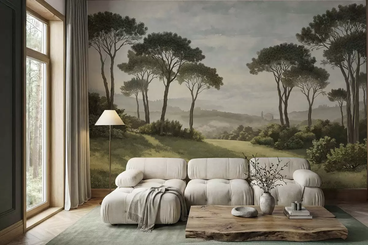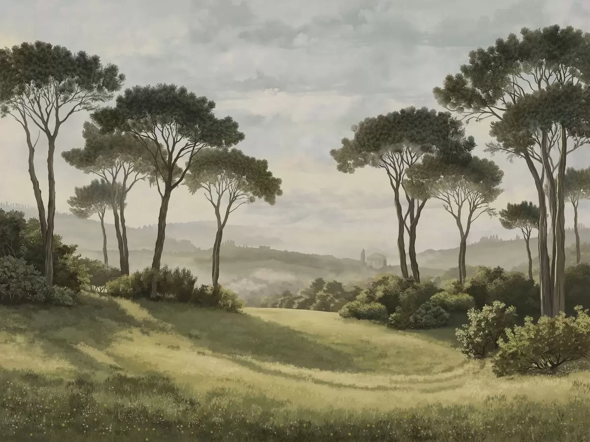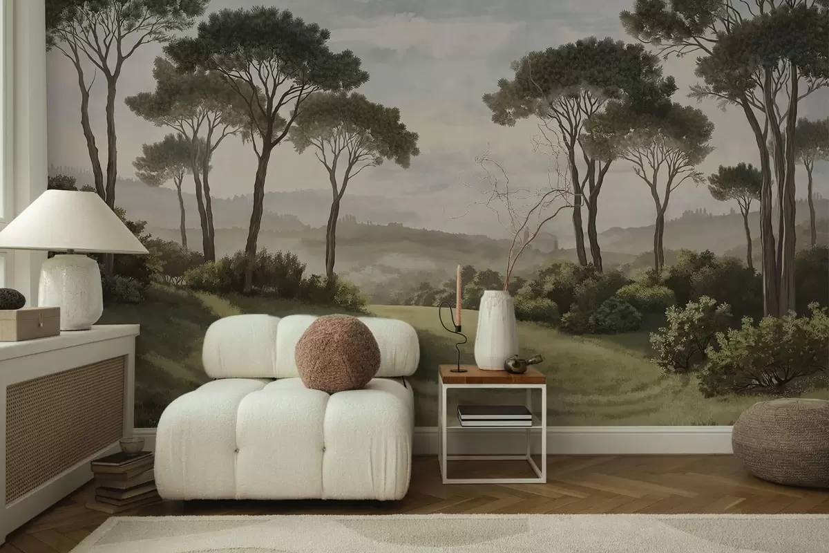 Fototapetak Tájkép fákkal, rétekkel és távoli köddel Nr. w05122v1