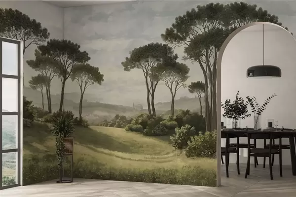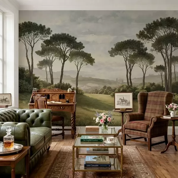 Fototapetak Tájkép fákkal, rétekkel és távoli köddel Nr. w05122v1