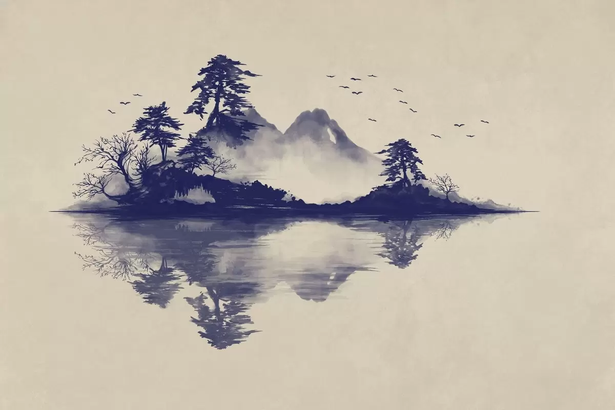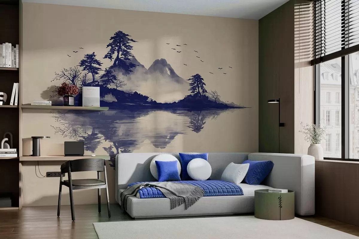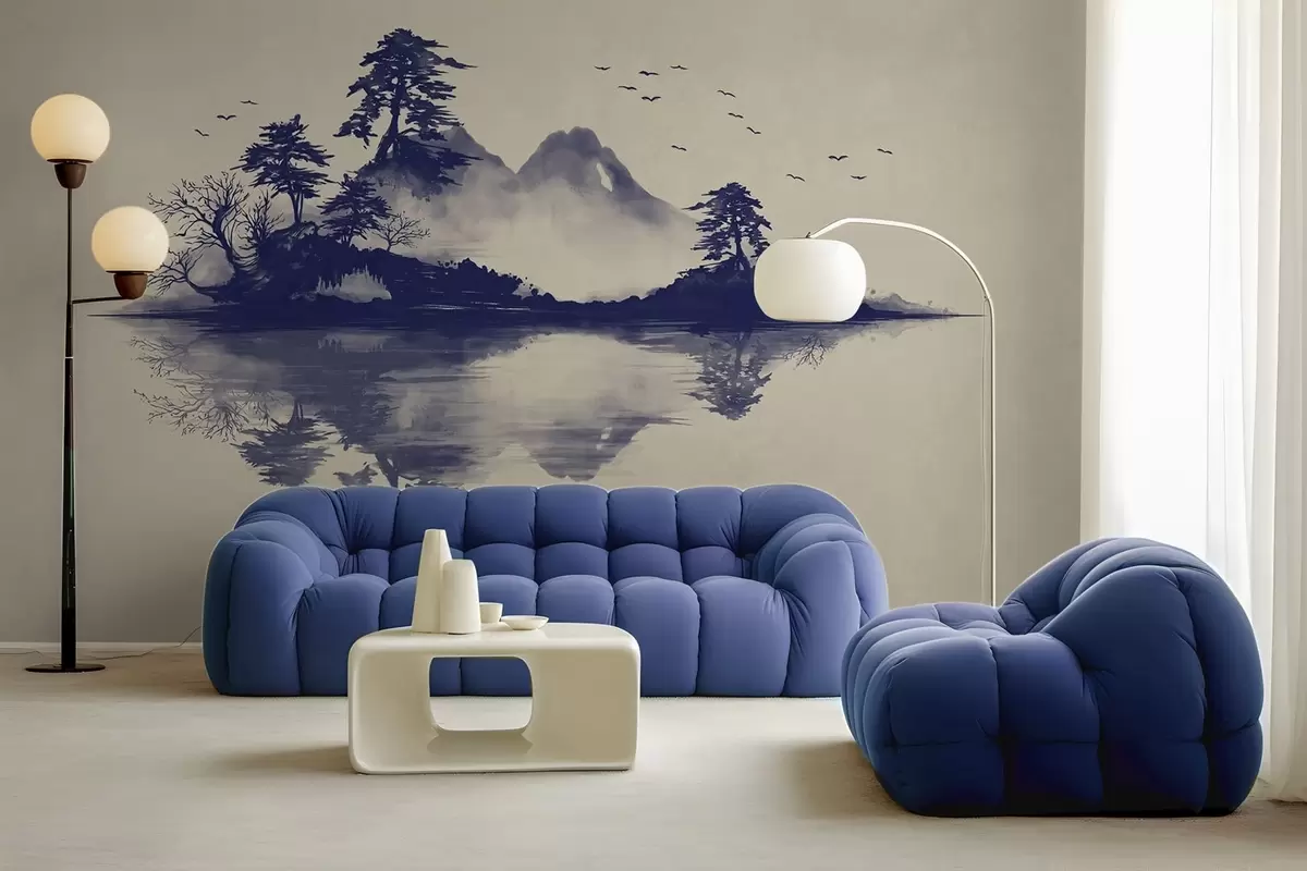 Fototapetak Kék árnyalatokban festett szumi-e hegyi tájkép Nr. w05124v2