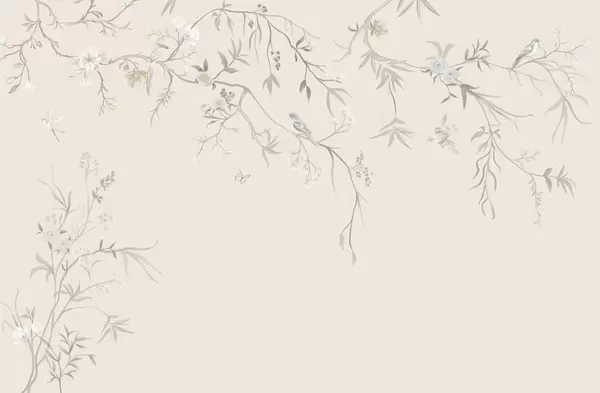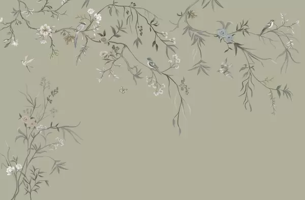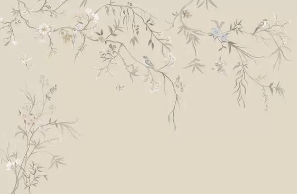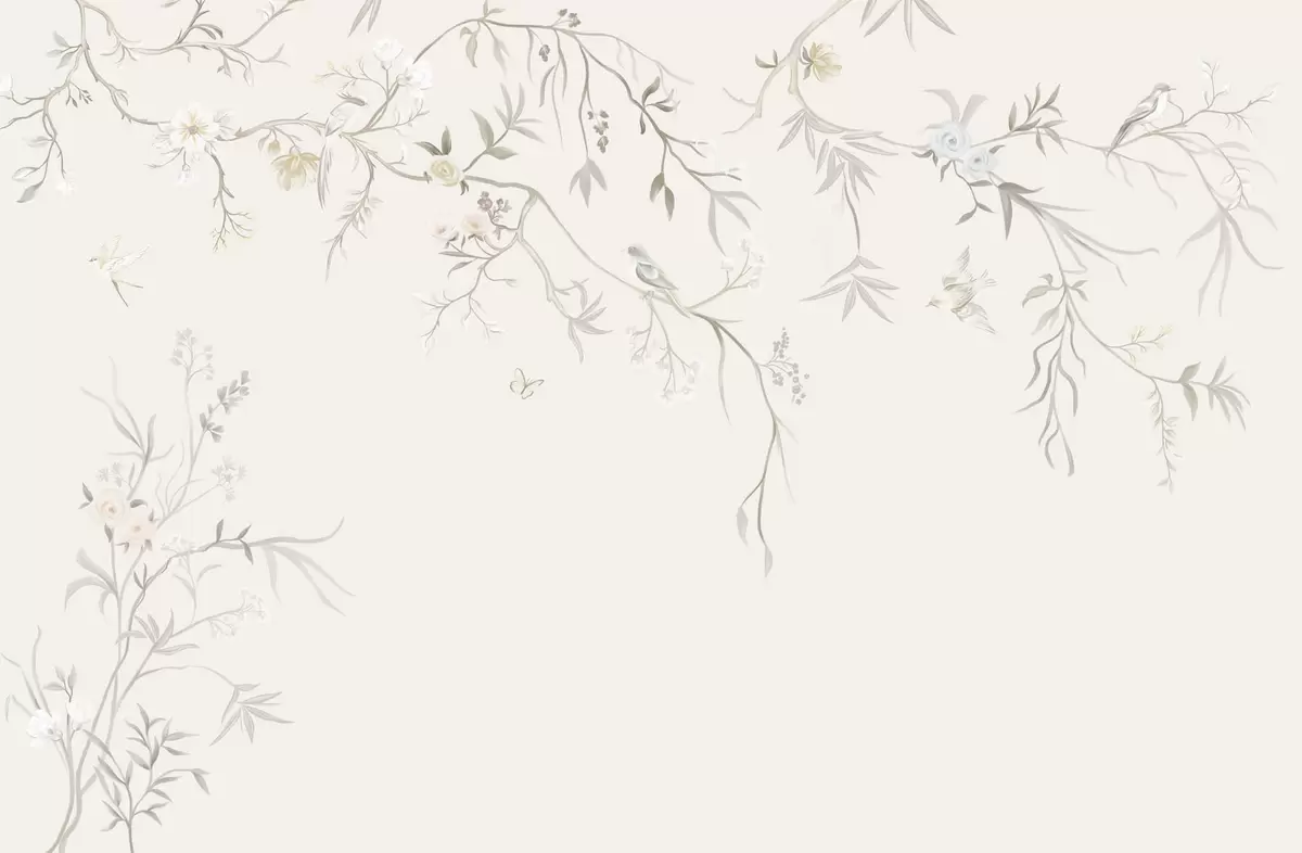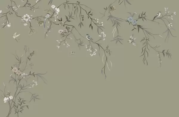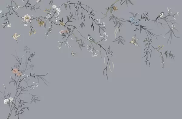 Fototapetak Finom virágok és madarak krétás háttér előtt Nr. w05127