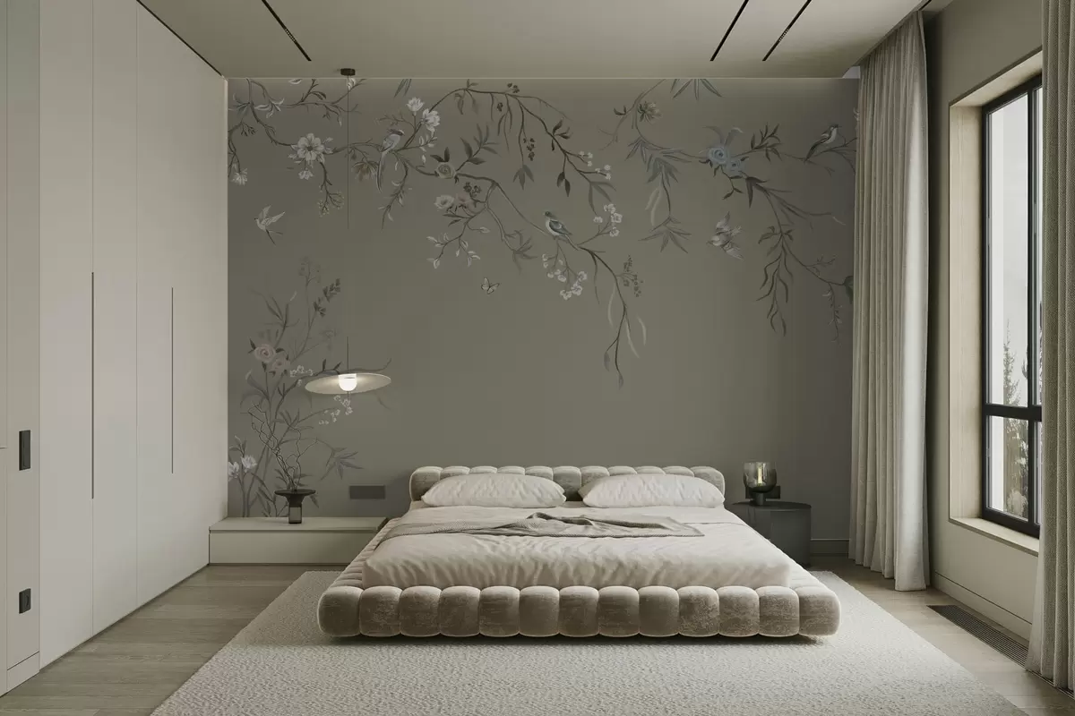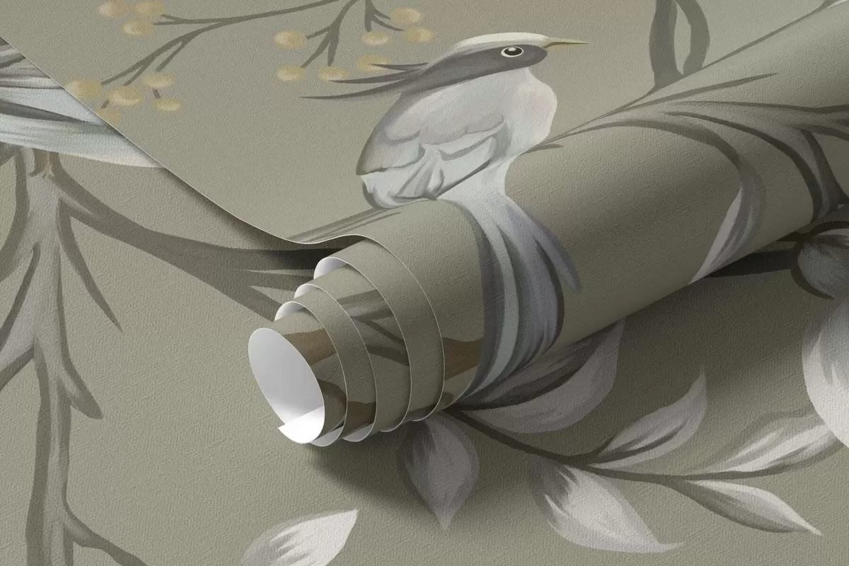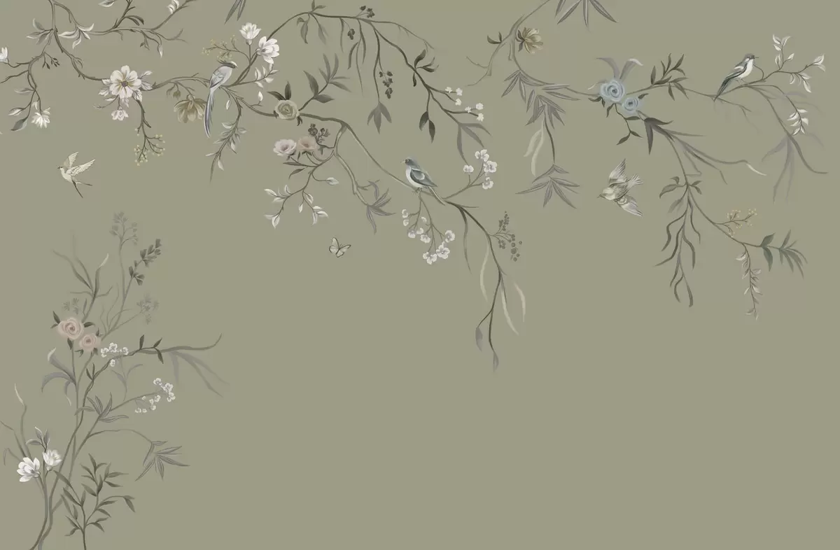 Fototapetak Virágmotívum madarakkal szürke háttérrel Nr. w05127v4