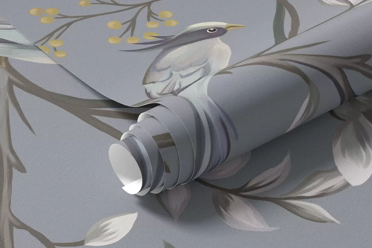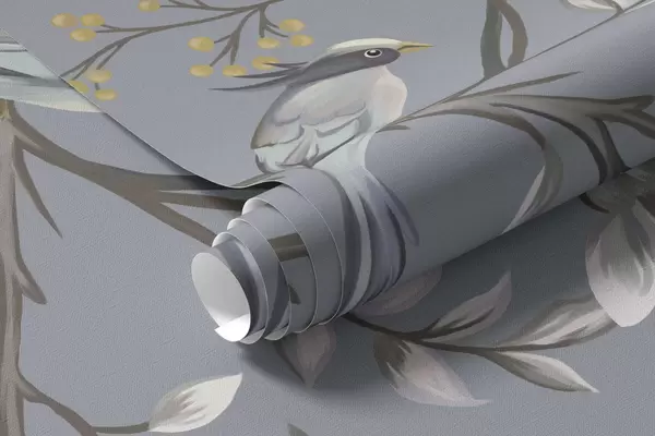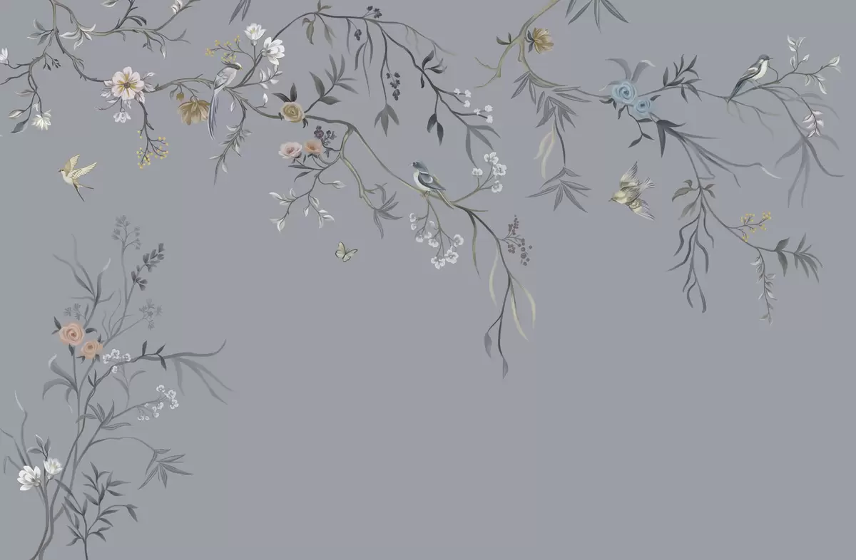 Fototapetak Virágos ágak madarakkal zöldes háttér előtt Nr. w05127v5