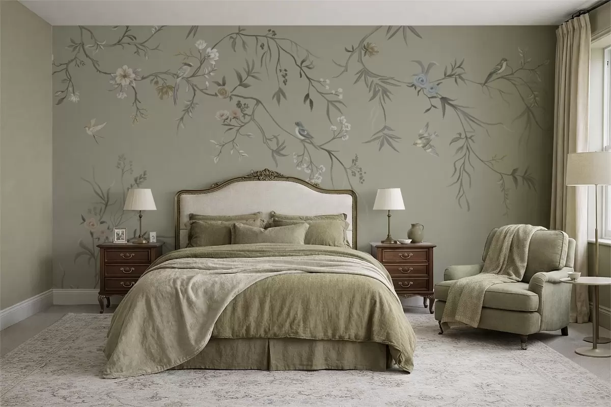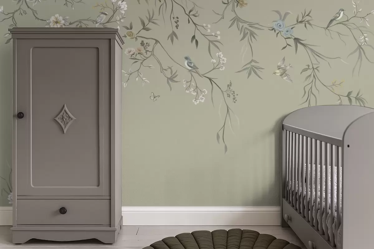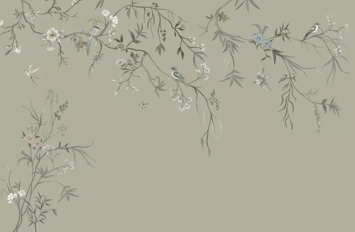 Fototapetak Virágmintás, madarakkal, hűvös háttérrel Nr. w05127v6