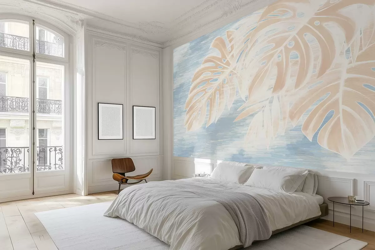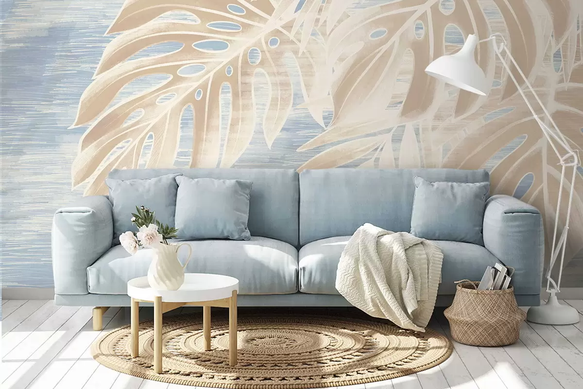 Fototapetak Absztrakt levelek meleg bézs árnyalatokban világos háttér előtt Nr. w05130
