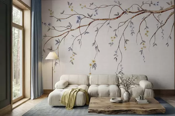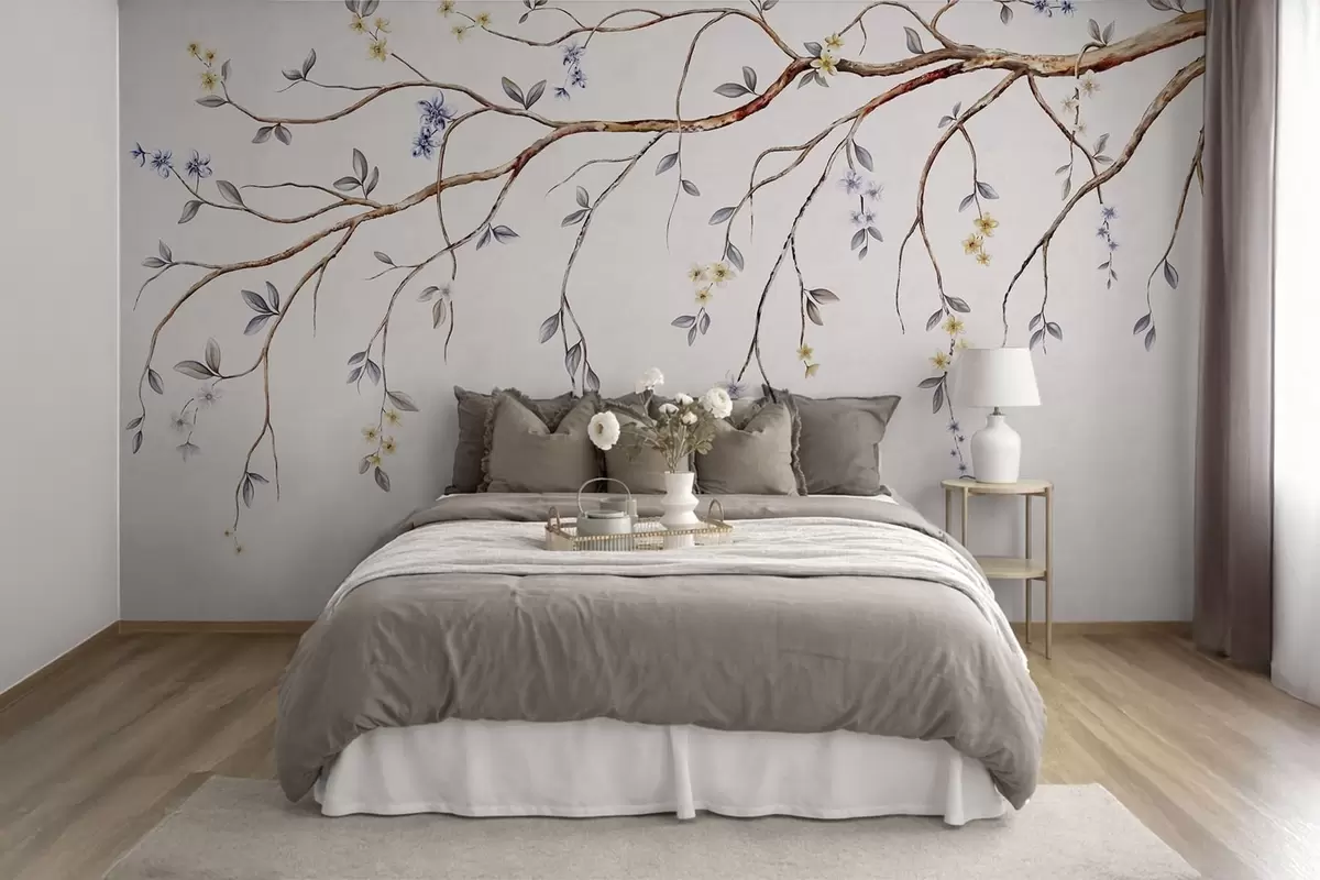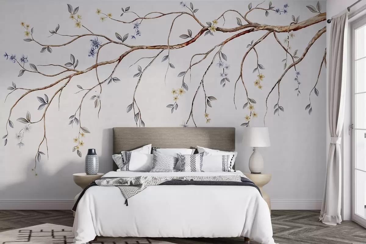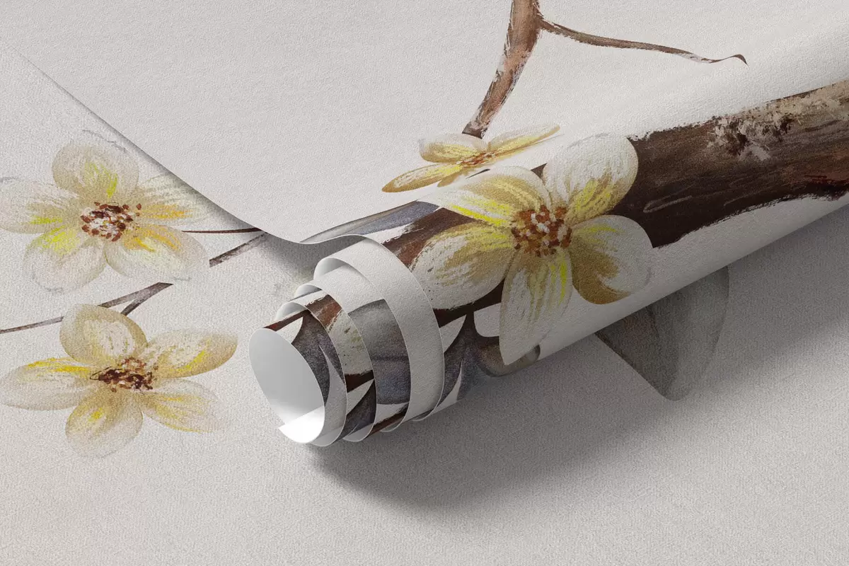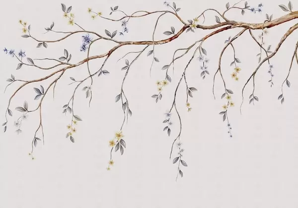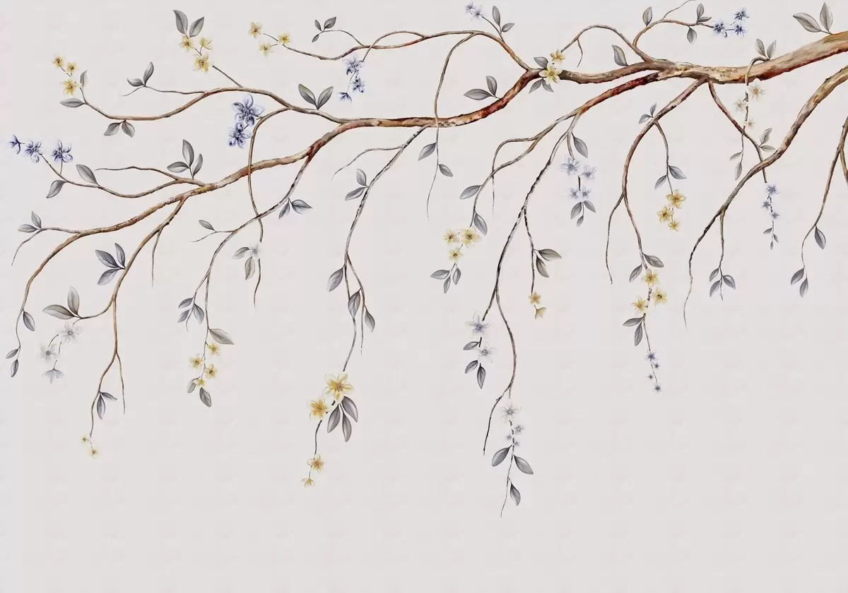 Fototapetak Vékony ágak kis virágokkal világos háttér előtt Nr. w05145