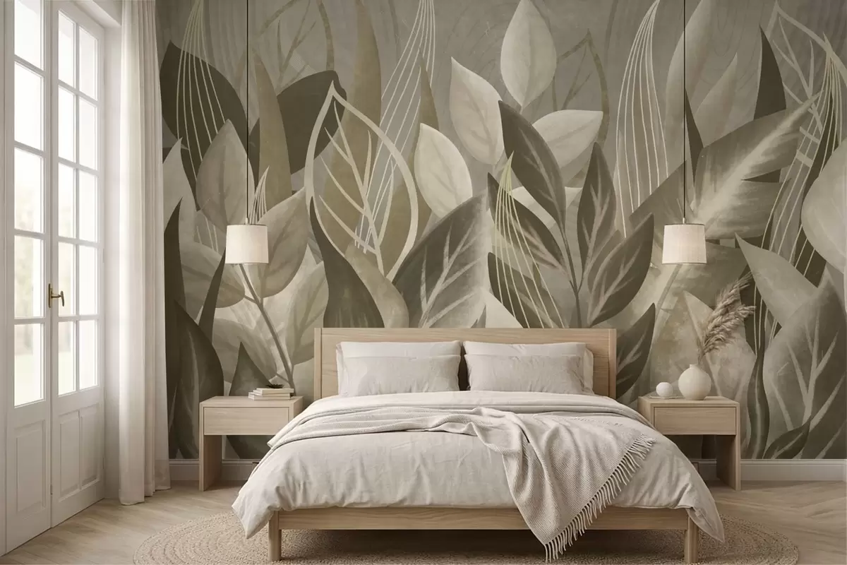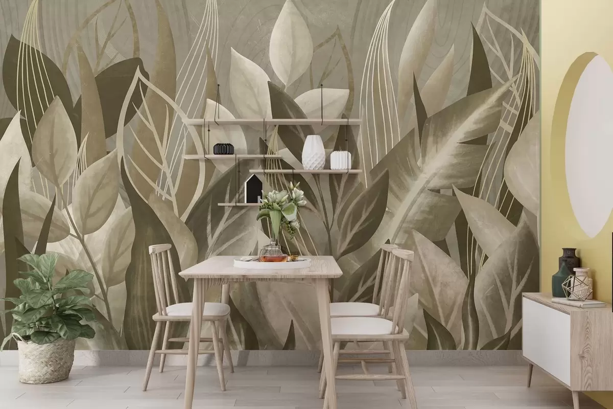 Fototapetak Absztrakt levelek bézs és zöld árnyalatokban Nr. w05148