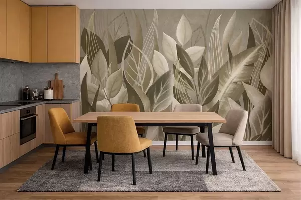 Fototapetak Absztrakt levelek bézs és zöld árnyalatokban Nr. w05148