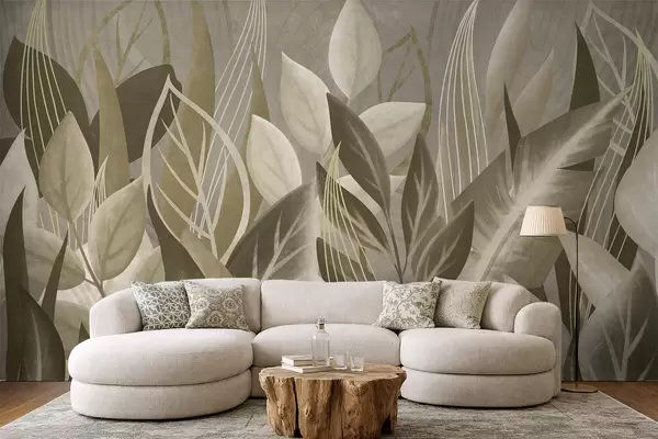 Fototapetak Absztrakt levelek bézs és zöld árnyalatokban Nr. w05148