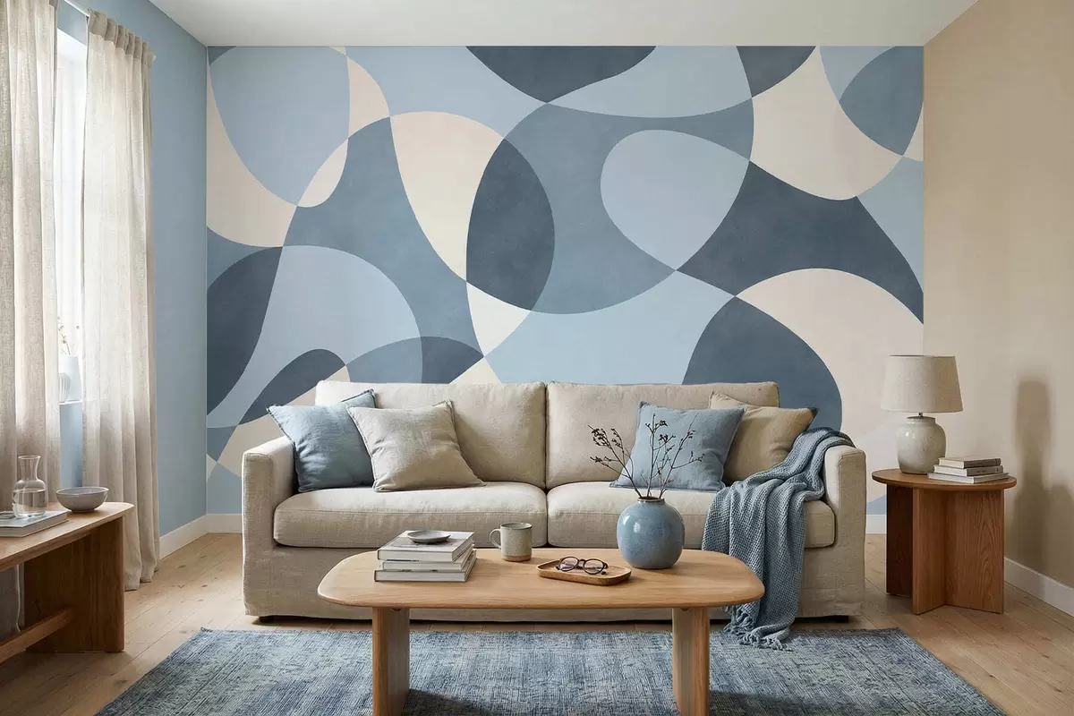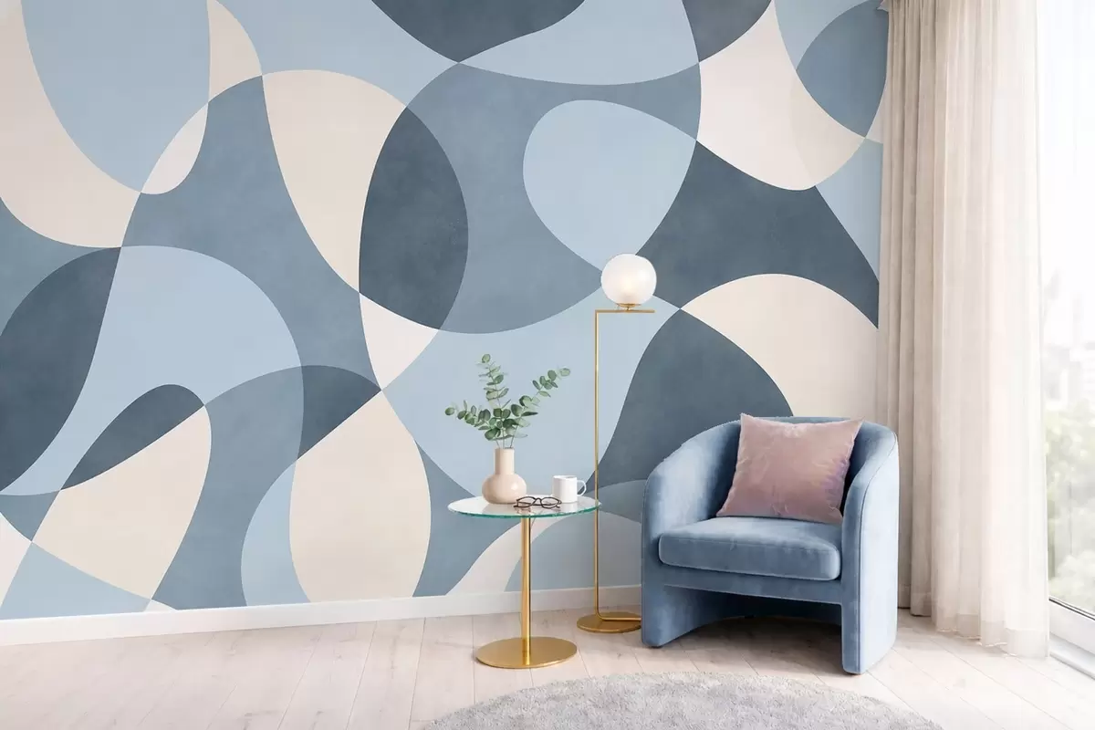 Fototapetak Kerek formákkal díszített, kék árnyalatú absztrakt minta Nr. w05149v2