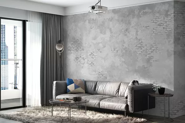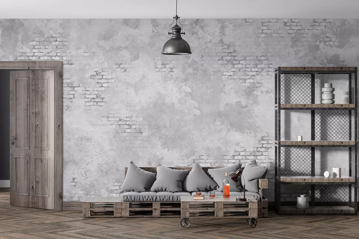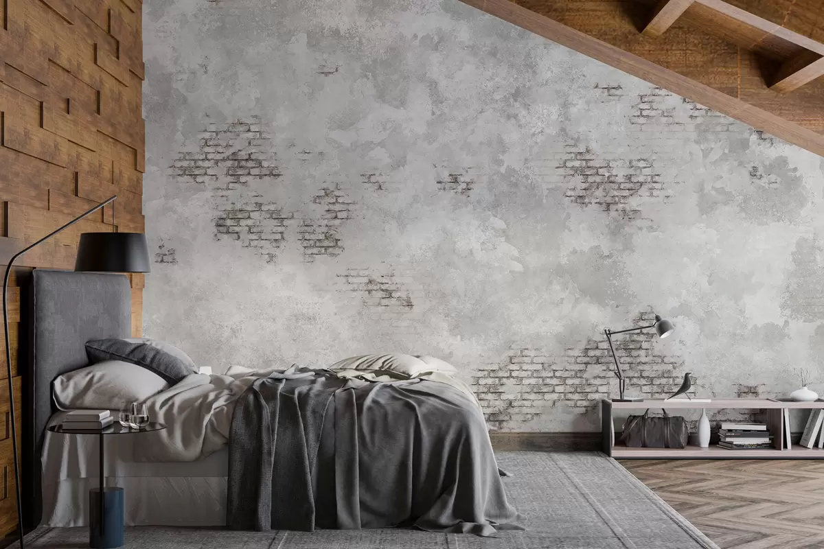 Fototapetak Grunge szürke vakolat, látható téglafoltokkal Nr. w05161v2
