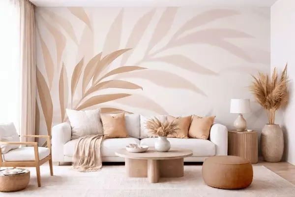Fototapetak nagy, ívelt pálmalevelek bézs és barna árnyalatokban Nr. w05211