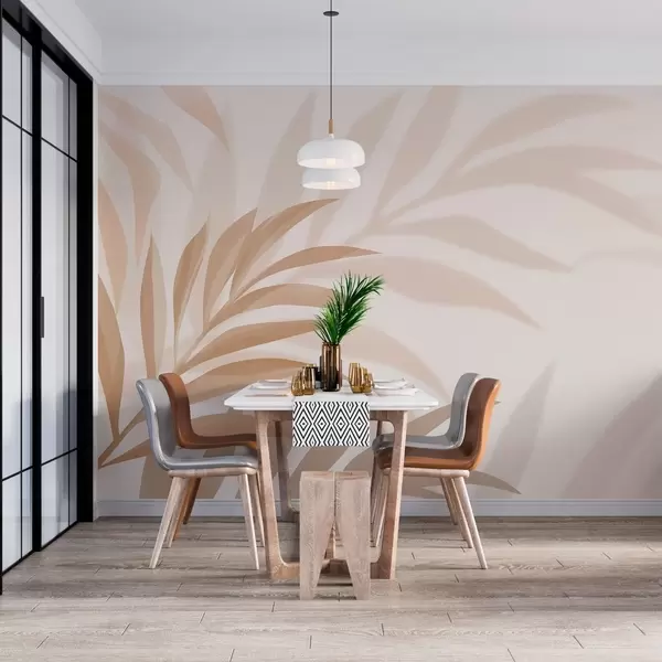 Fototapetak nagy, ívelt pálmalevelek bézs és barna árnyalatokban Nr. w05211