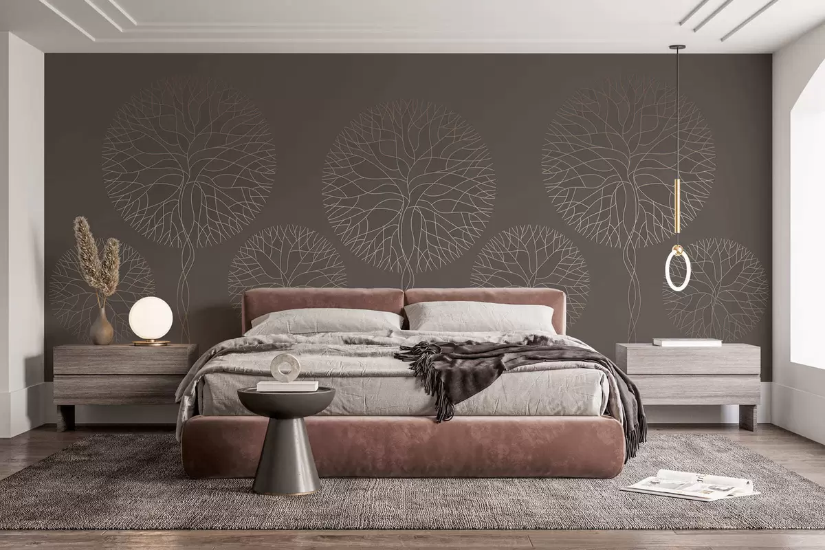 Fototapetak Fantasy lineáris fák buja koronával, elegáns mokka árnyalatokban Nr. w05213v1