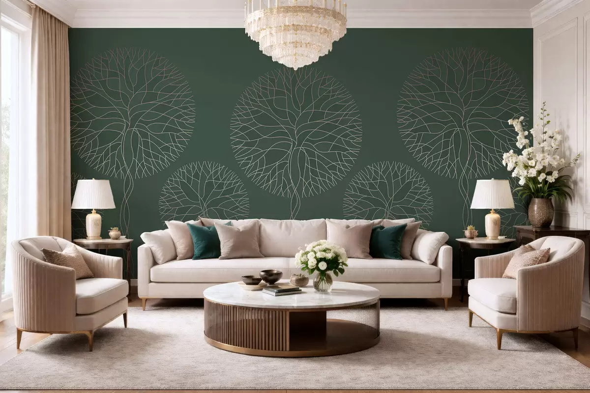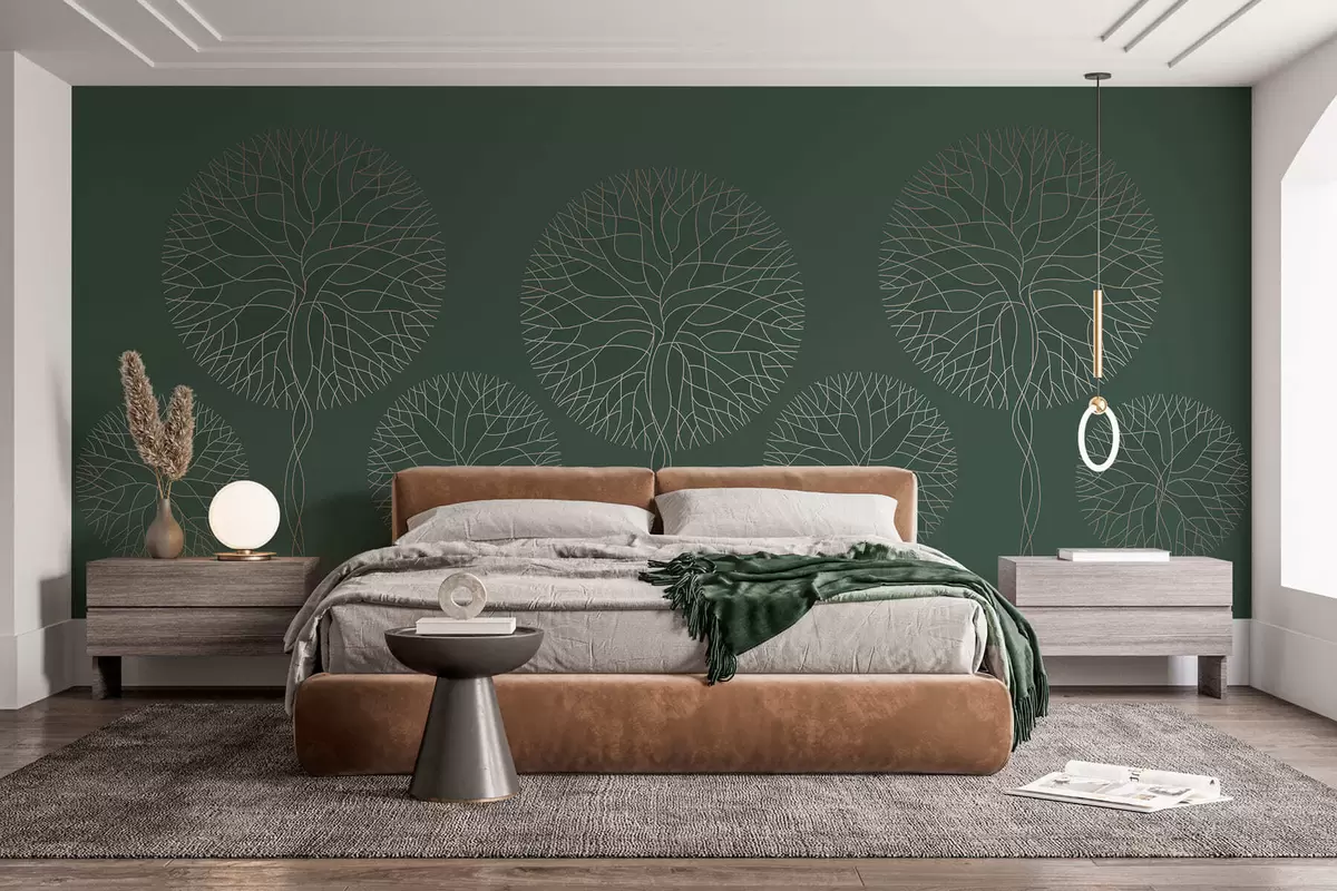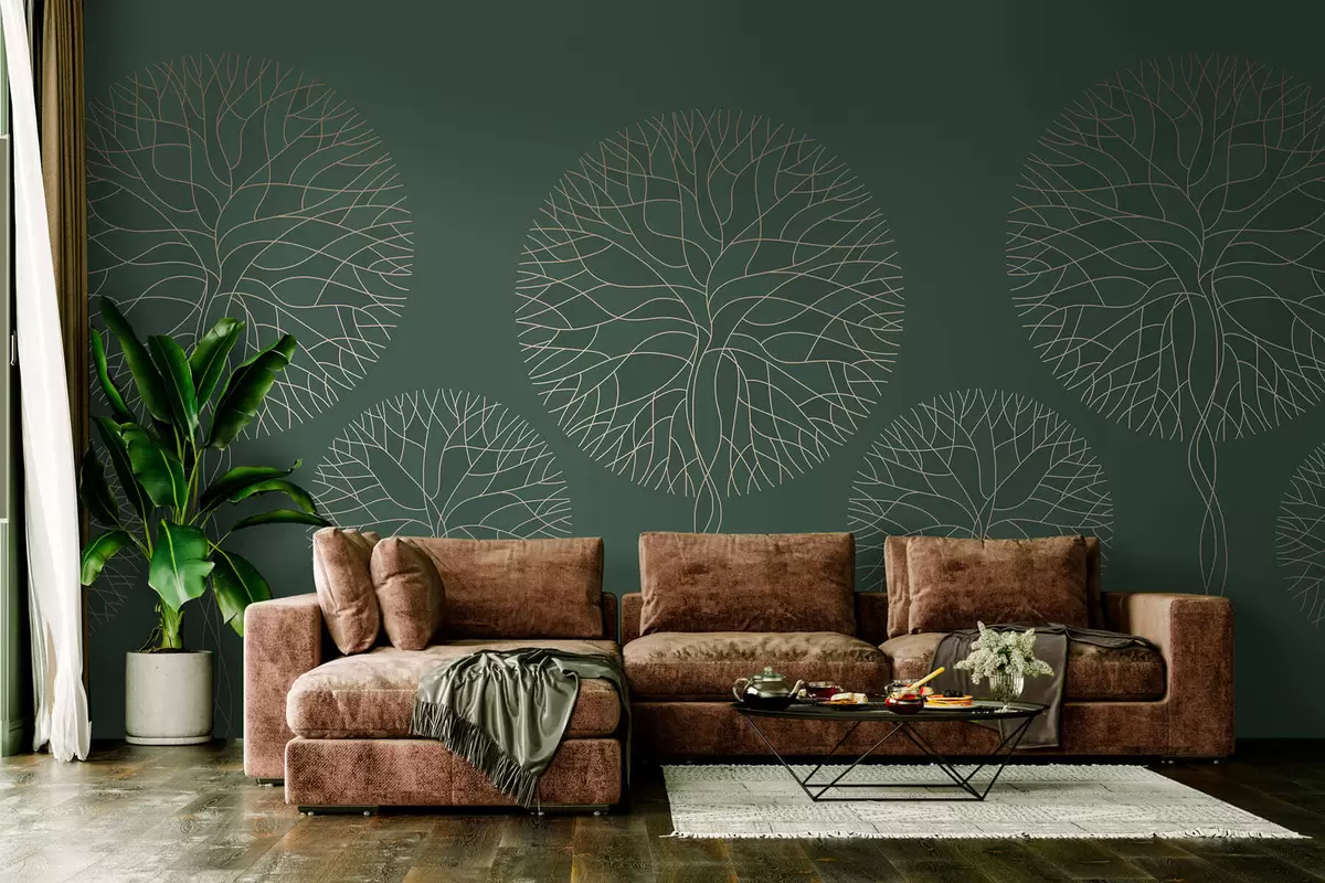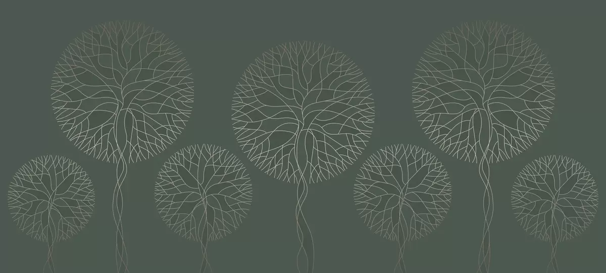 Fototapetak Fantázia lineáris fák buja koronával, elegáns sötétzöld árnyalatokban Nr. w05213v2