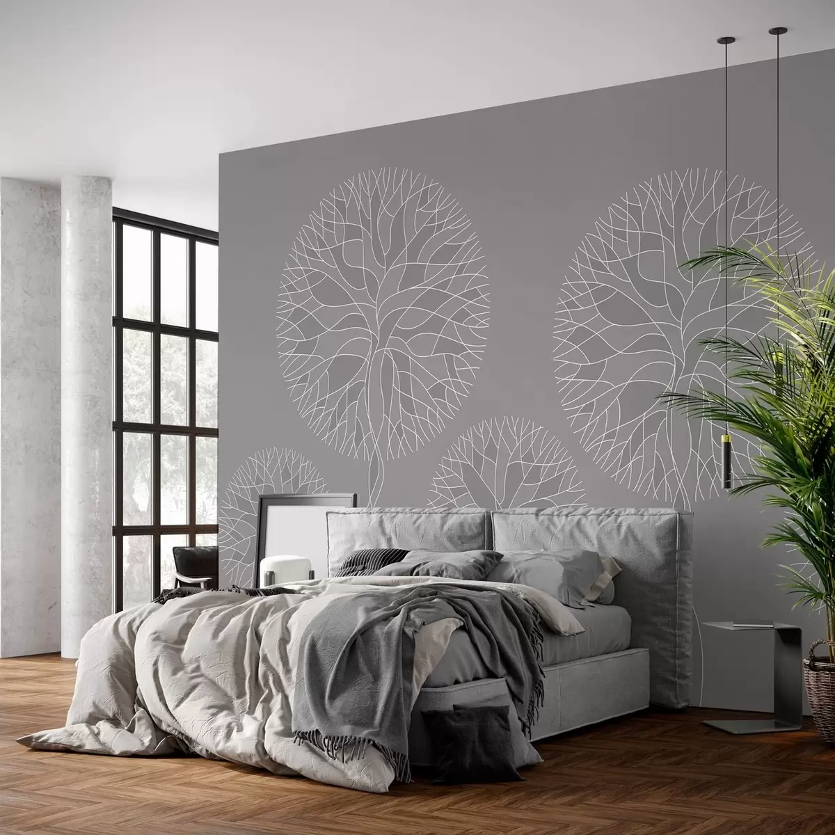 Fototapetak Fantázia lineáris fák buja koronával, közepes szürke árnyalatokban Nr. w05213v5