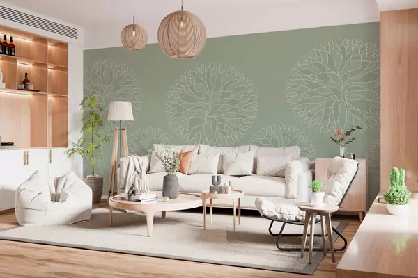 Fototapetak Fantasy lineáris fák, buja koronával, világos zöld árnyalatokban Nr. w05213v6