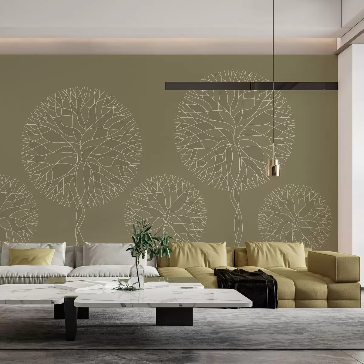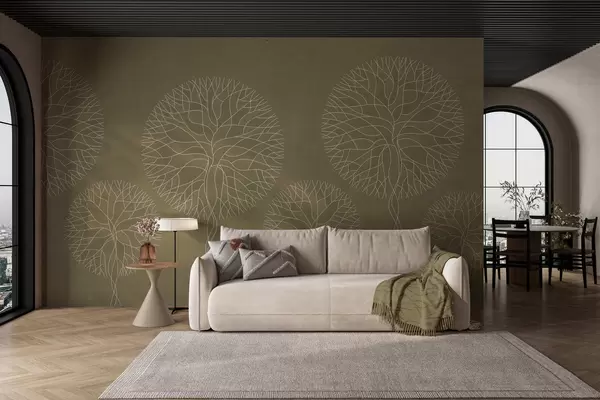 Fototapetak Fantázia lineáris fák, buja koronával, khaki árnyalatokban Nr. w05213v7