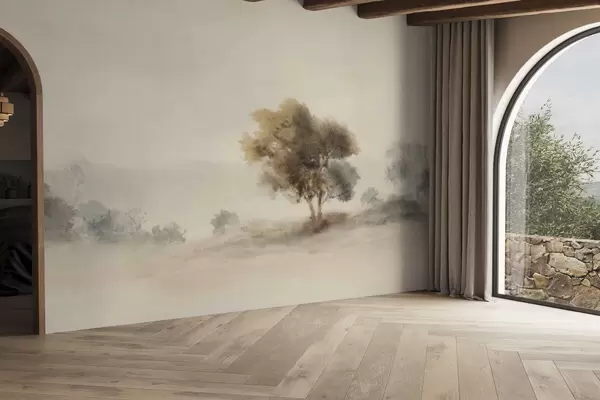 Fototapetak Minimalista táj egy magányos fával a ködben Nr. w05223