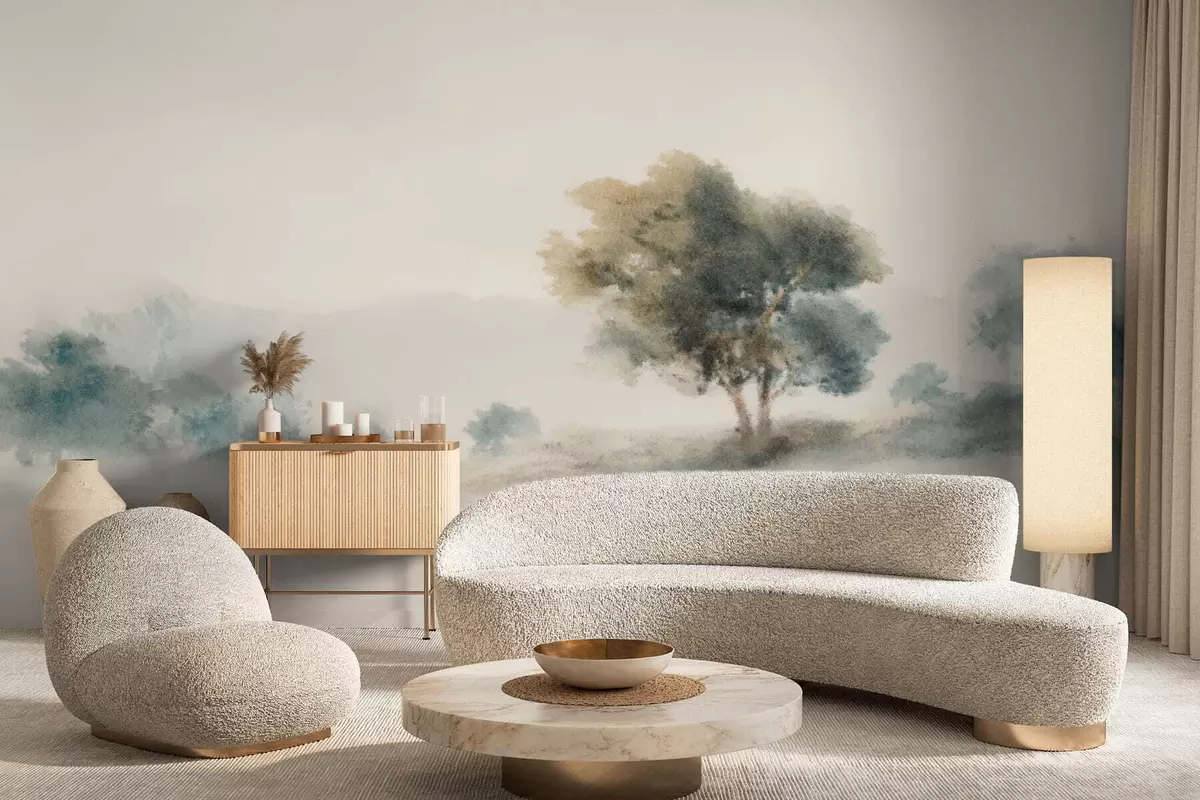 Fototapetak Nyugodt táj egy fával és lágy, elmosódott formákkal Nr. w05223v1