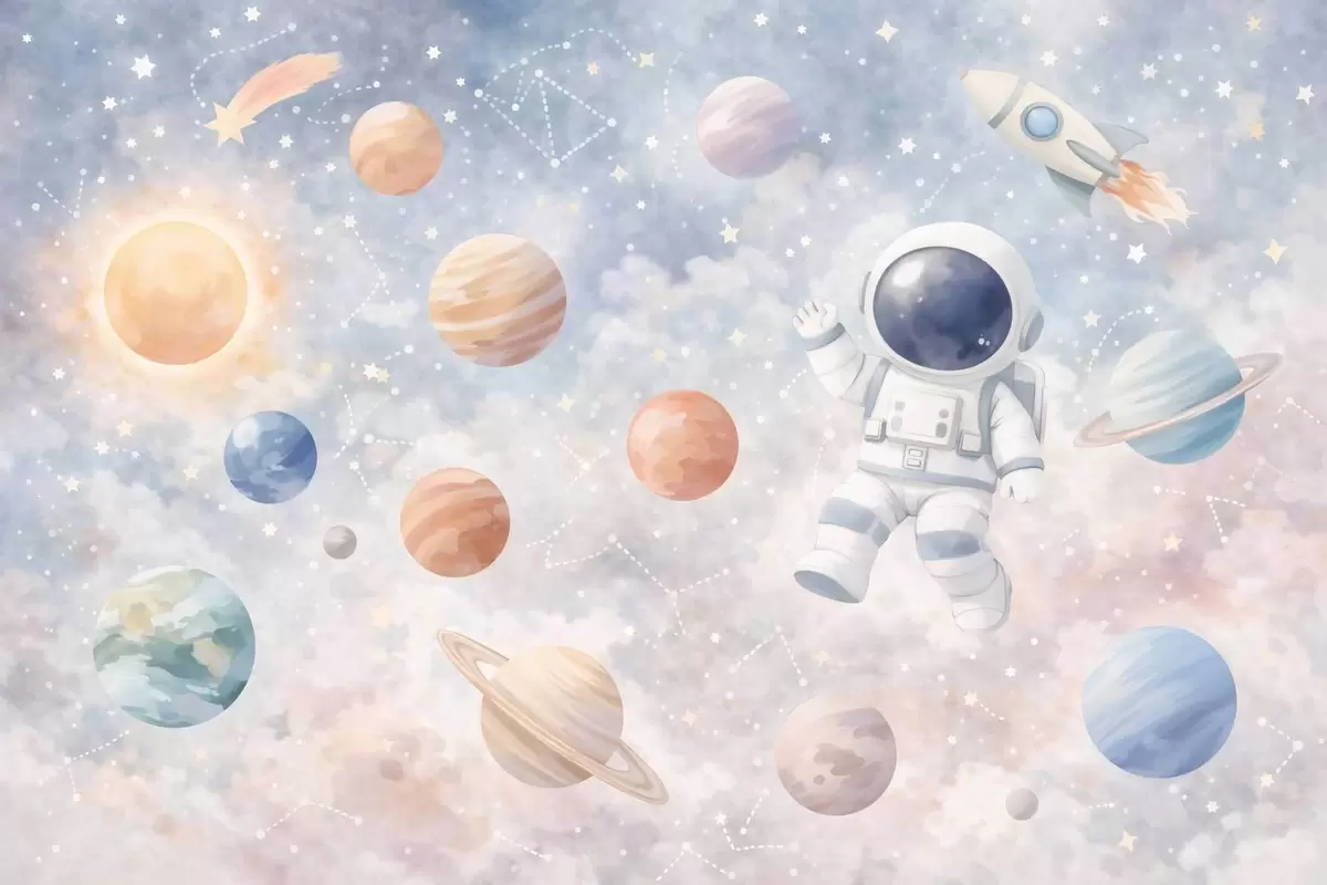Fototapetak egy kis űrhajós a bolygók és csillagok között Nr. w05233