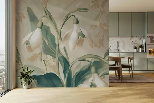 Fototapetak virágzó hóvirágok bézs háttér előtt Nr. w05234