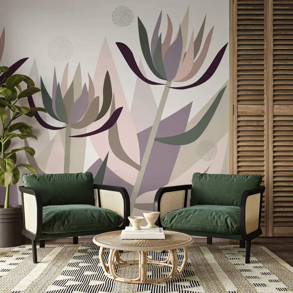 Fototapetak primitív stílusban ábrázolt protea virágok Nr. w05236