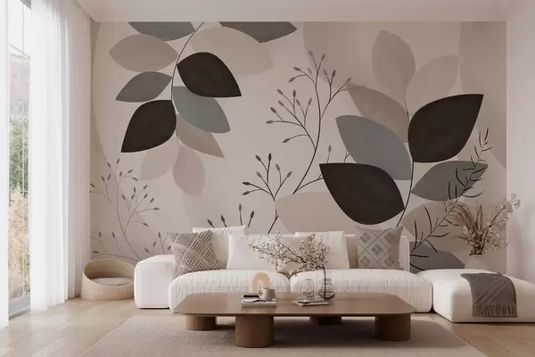 Fototapetak bézs, szürke és barna árnyalatú levelek és fűszálak Nr. w05237