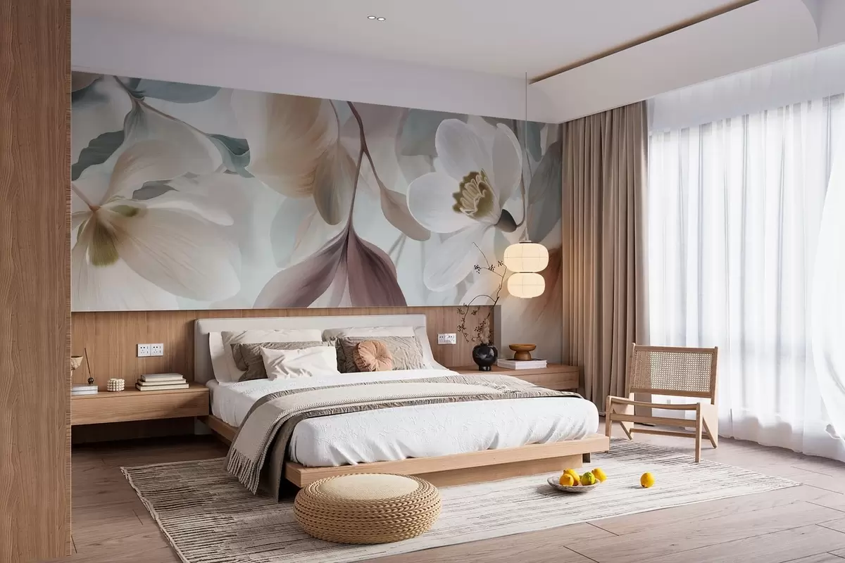 Fototapetak virágok és levelek finom kompozíciója pasztell árnyalatokban Nr. w05240
