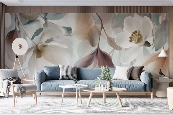Fototapetak virágok és levelek finom kompozíciója pasztell árnyalatokban Nr. w05240